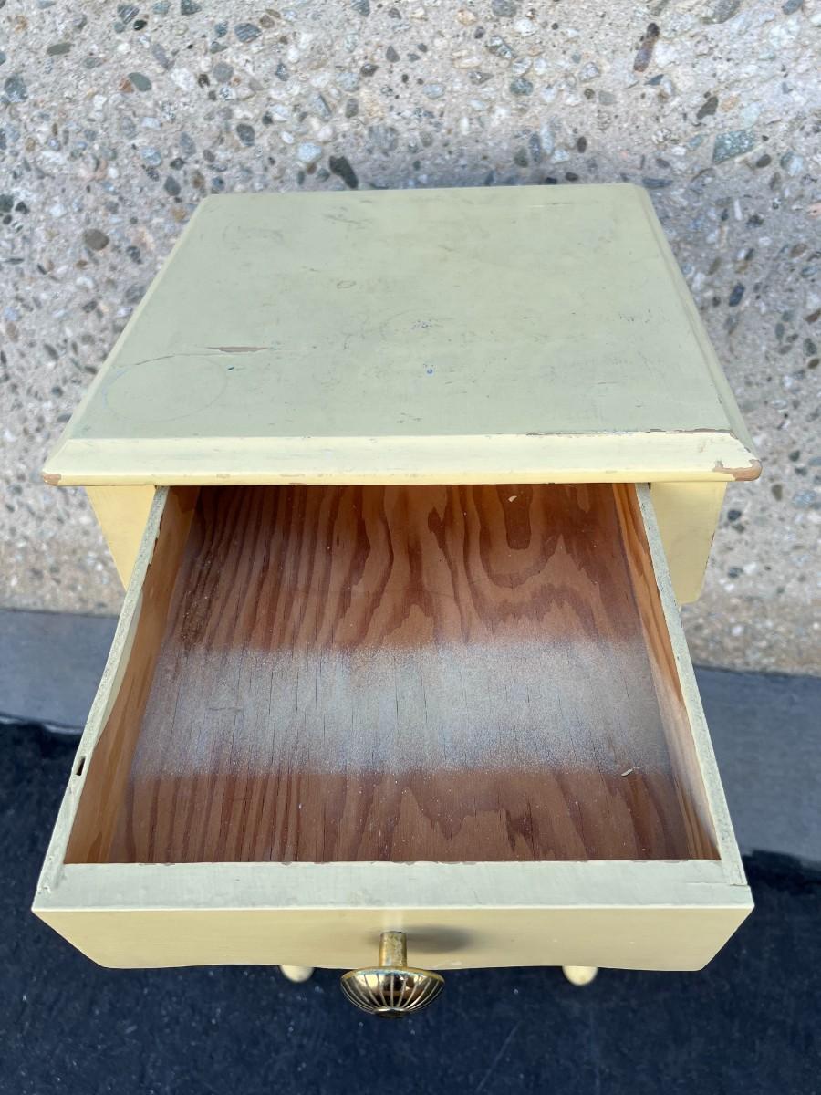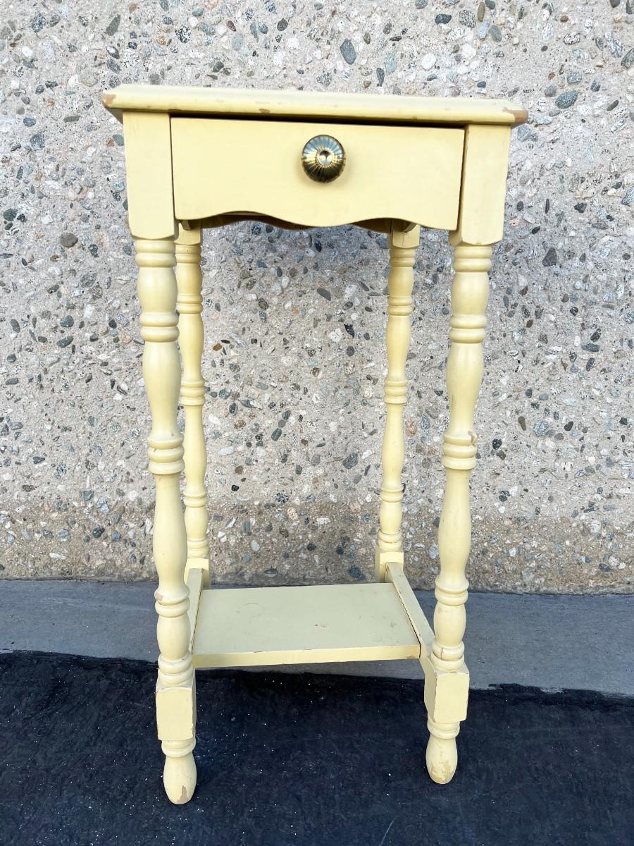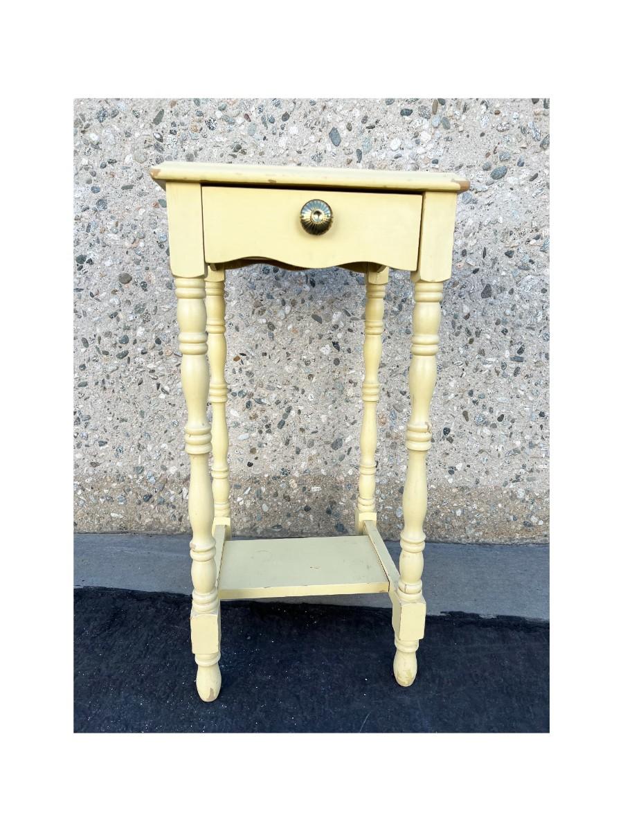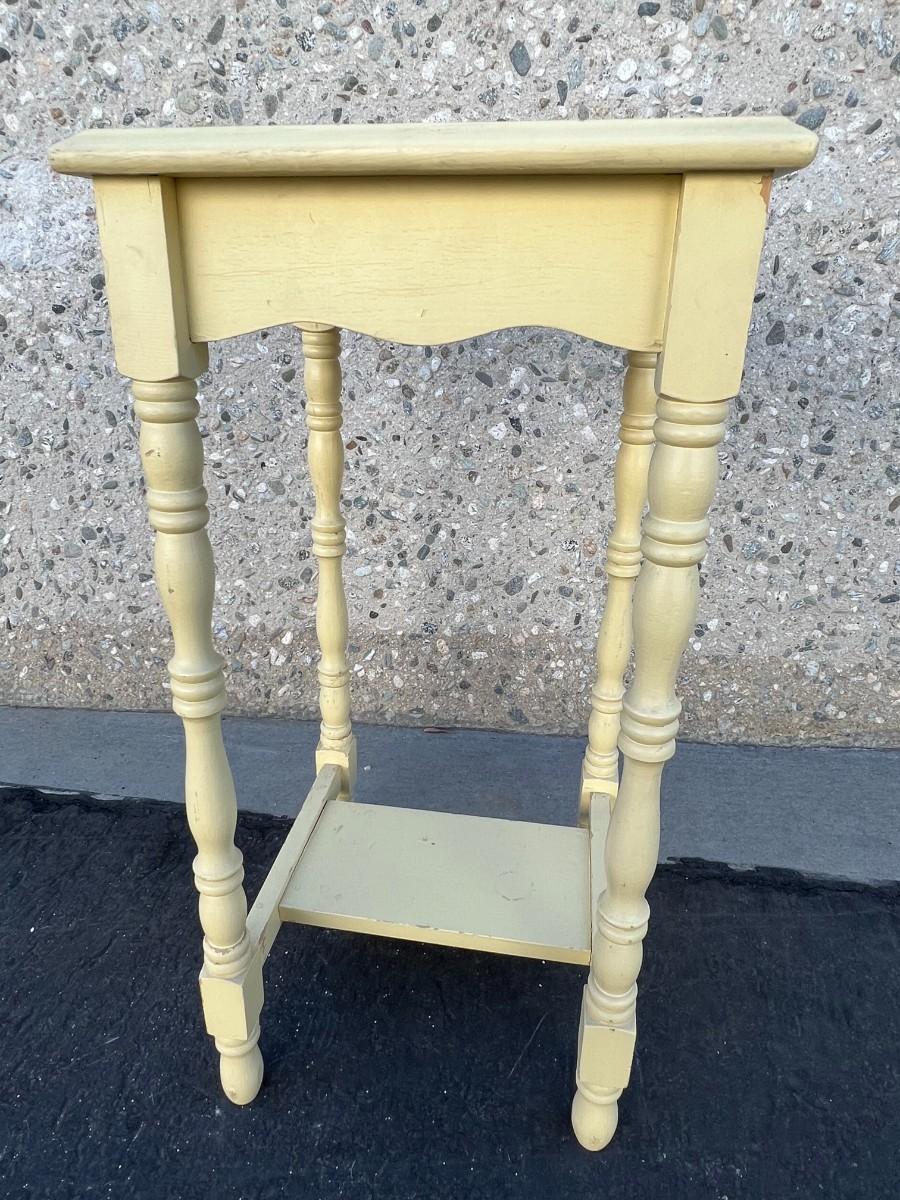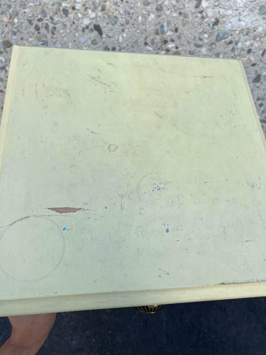 There is some wear to the piece and one of the wooden legs is sticking out and needs to be re-glued, but there is no other significant damage and is in overall good displayable or useable condition. Check pictures for more details and for sizing.