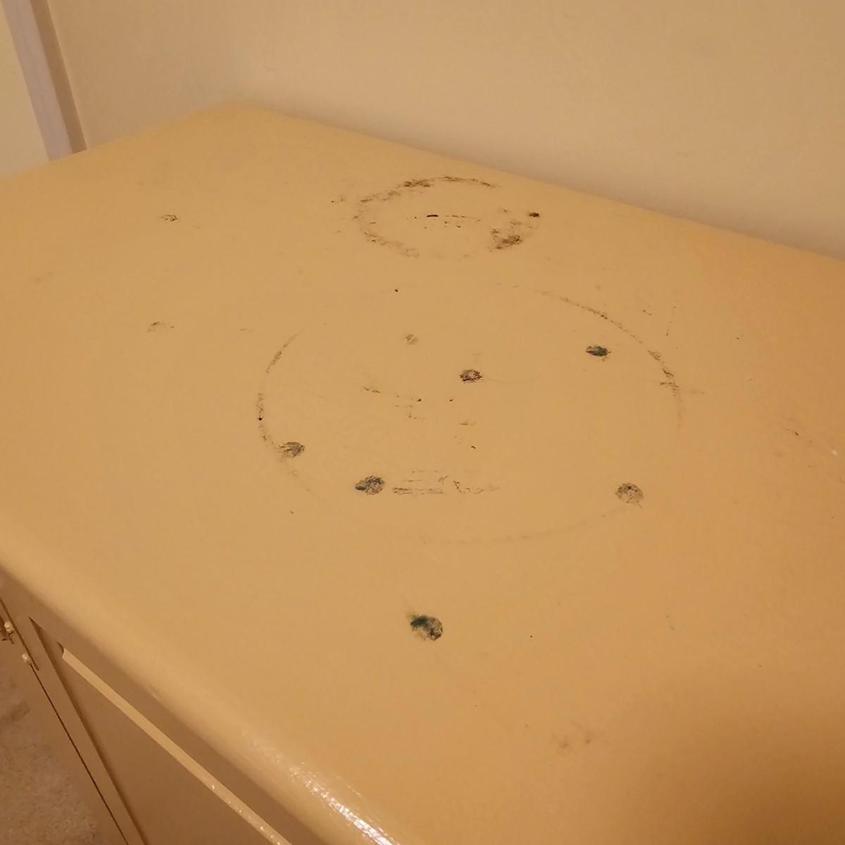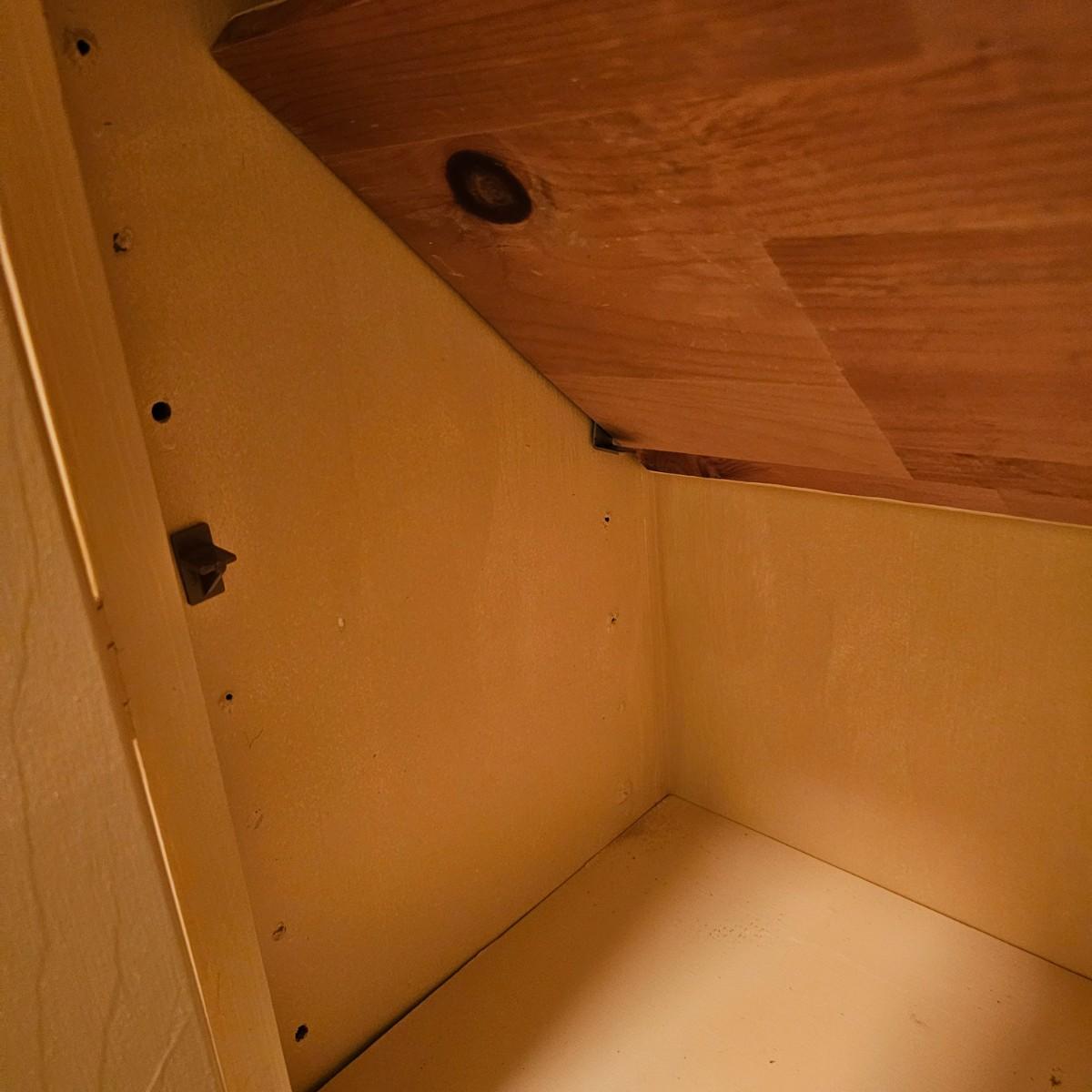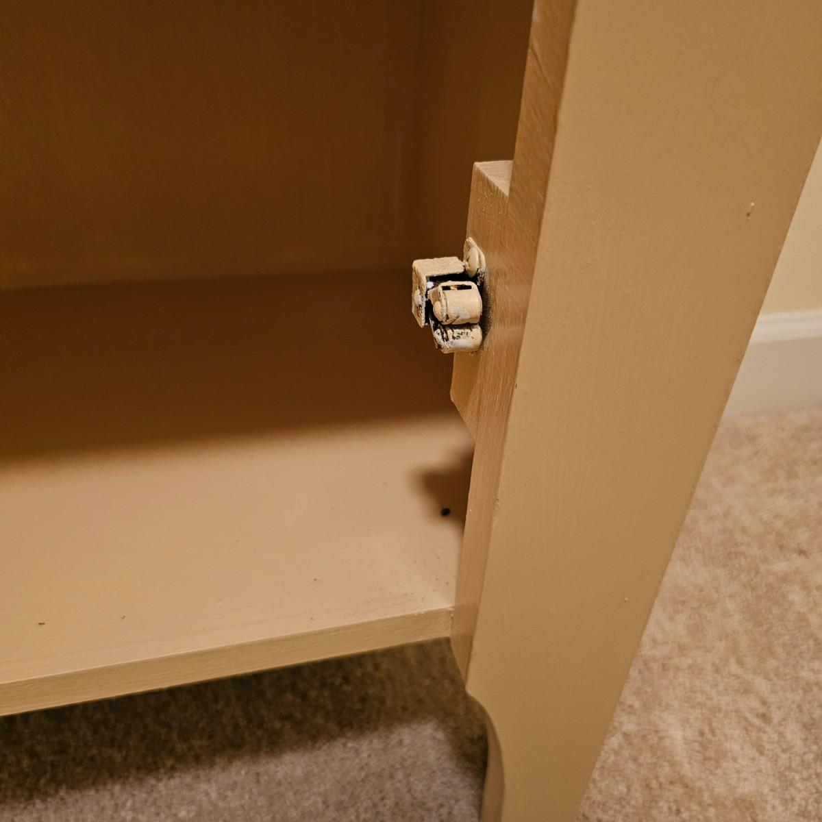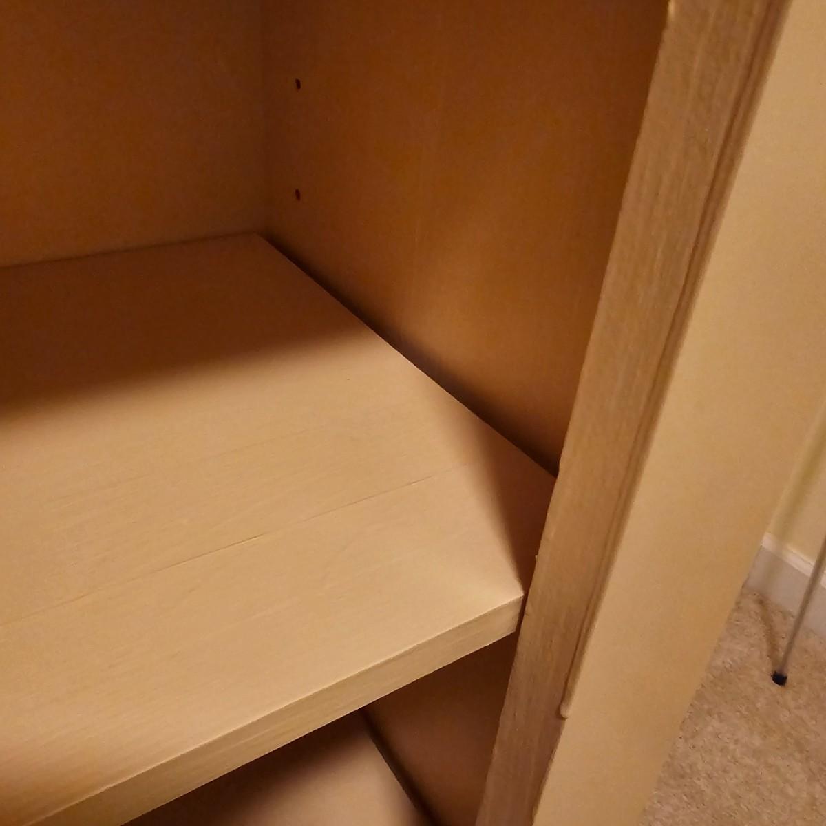 A wooden cabinet that has been painted a light yellow color. It appears to be pine with a manufactured wood back. The piece has three adjustable shelves inside. Door has old style wood latch. Unit measures 23" x 13" x 50"H. Some conditions issues on top, Please see photos for details. Local pickup only. This item is located upstairs. Winning bidder must bring assistance to help move and load this item due to its size and location.