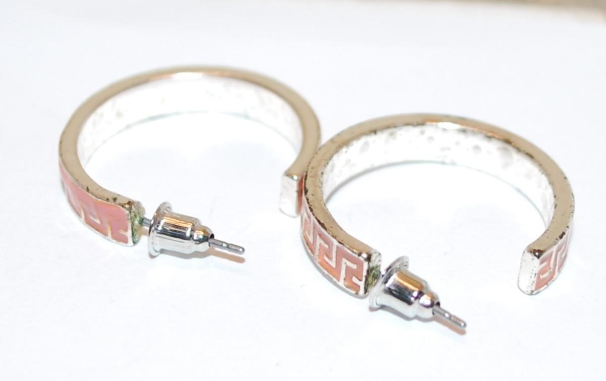 Vintage Style Pink Line Design EARRINGS with Stud Post Clasp