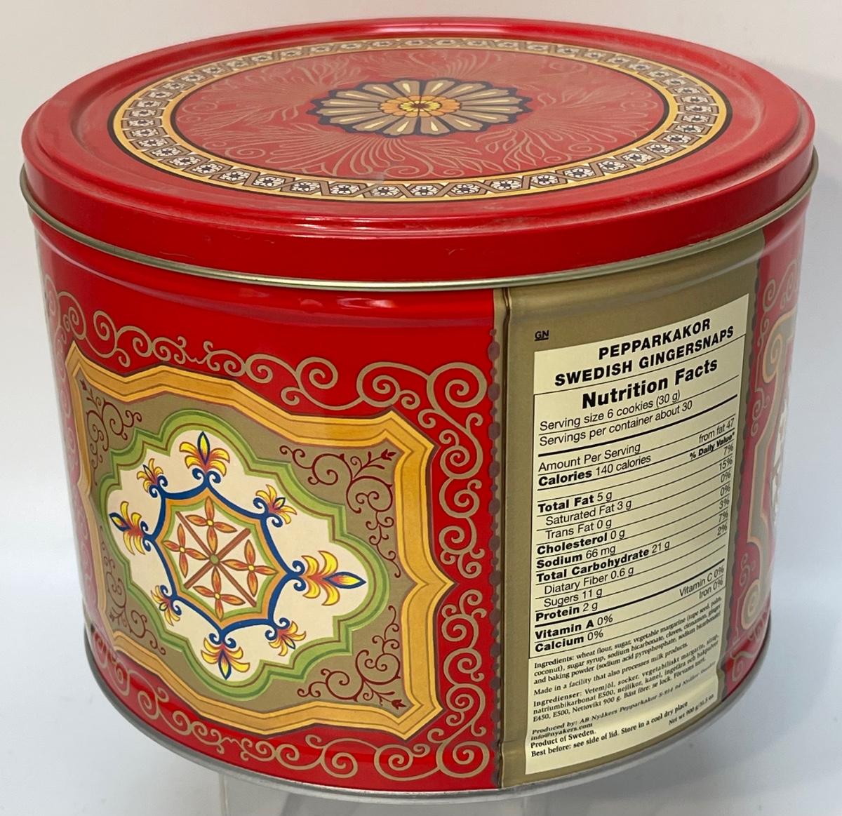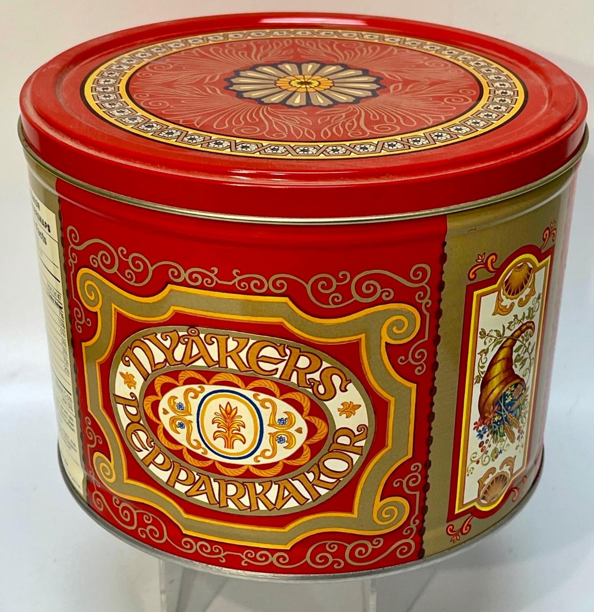 Vintage Style Red and Gold Round Nyakers Pepparkakor Cookie Decorative Tin