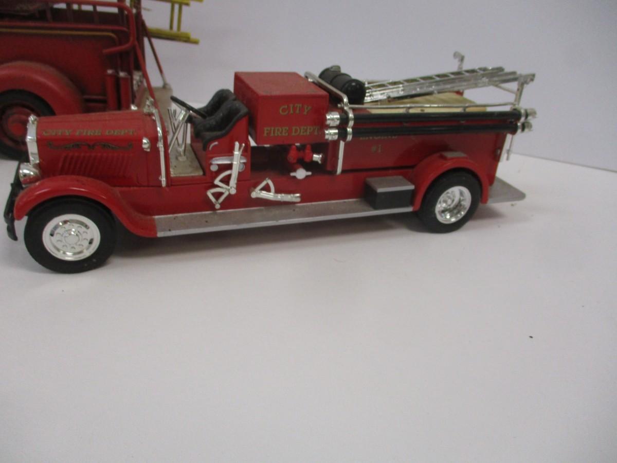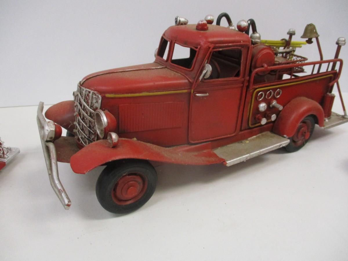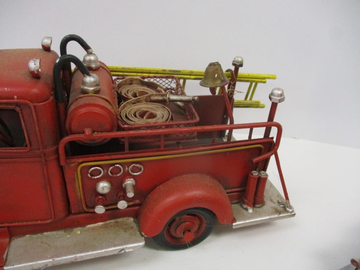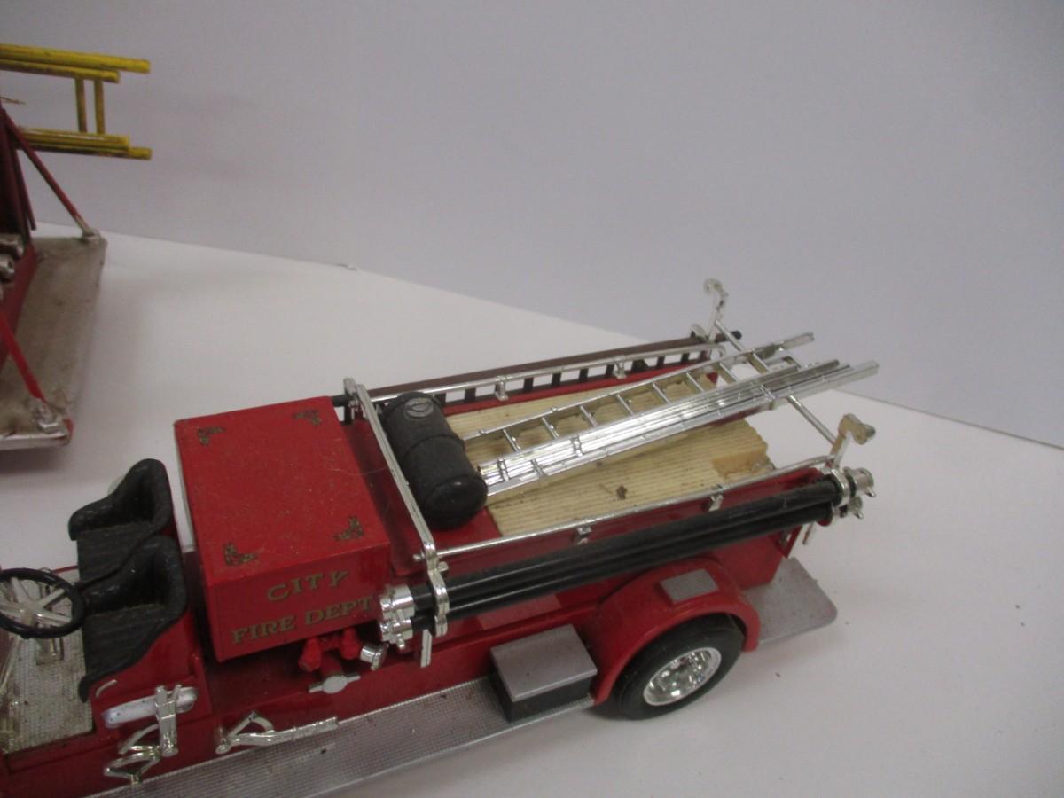 Vintage Style Red Firetruck All Metal Model Ladder Hose Bell Pump & Mack Pumper Firetruck & ERTL Firetruck