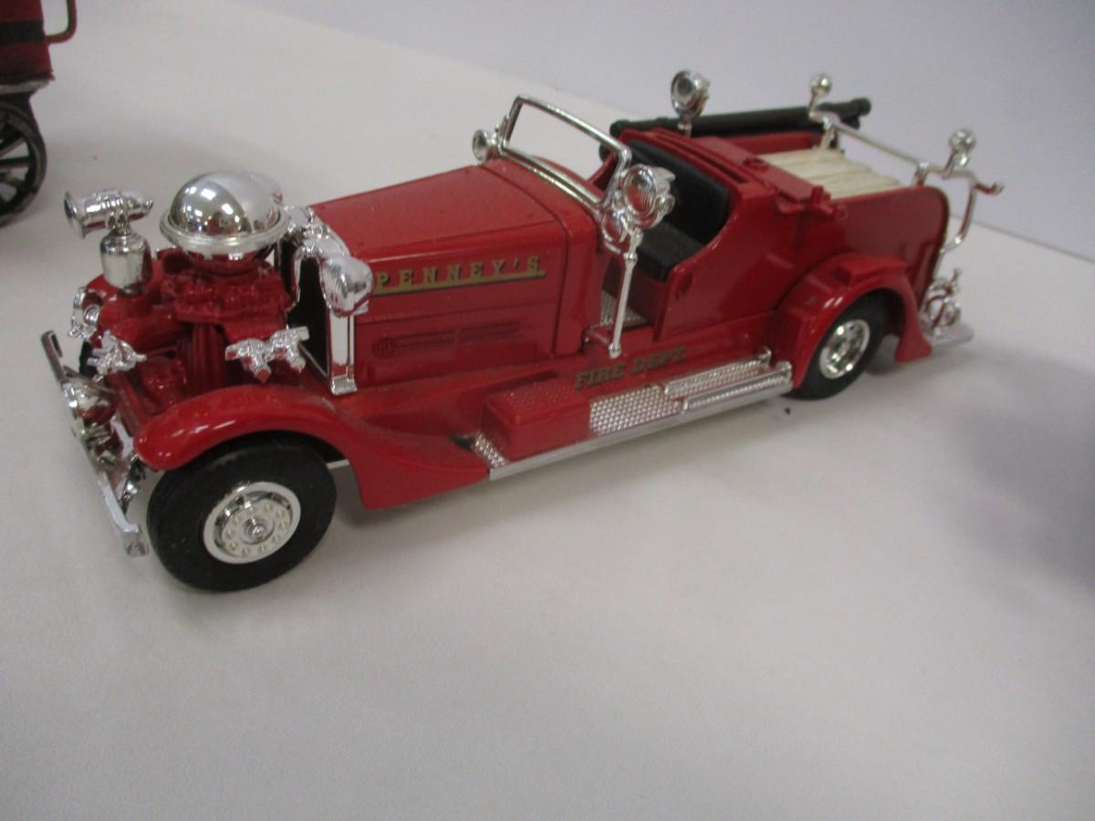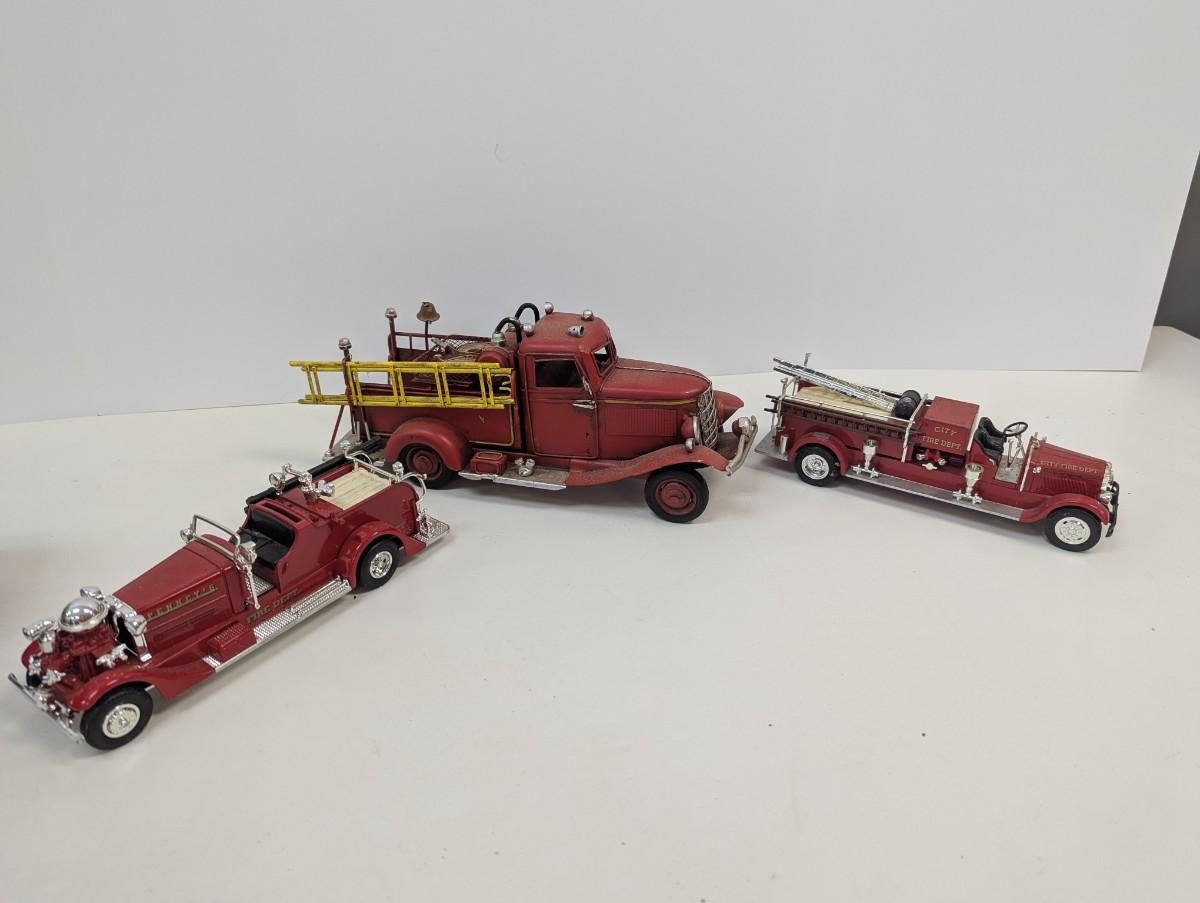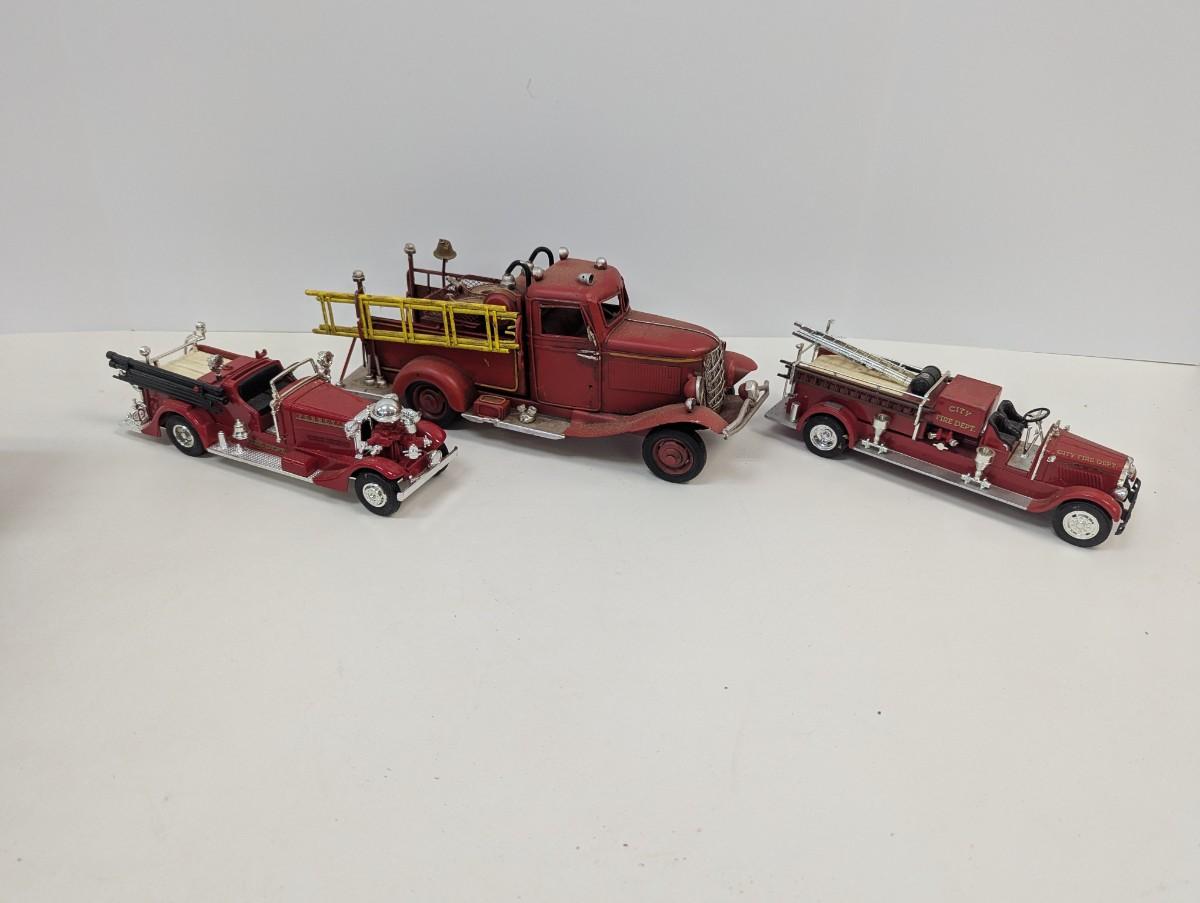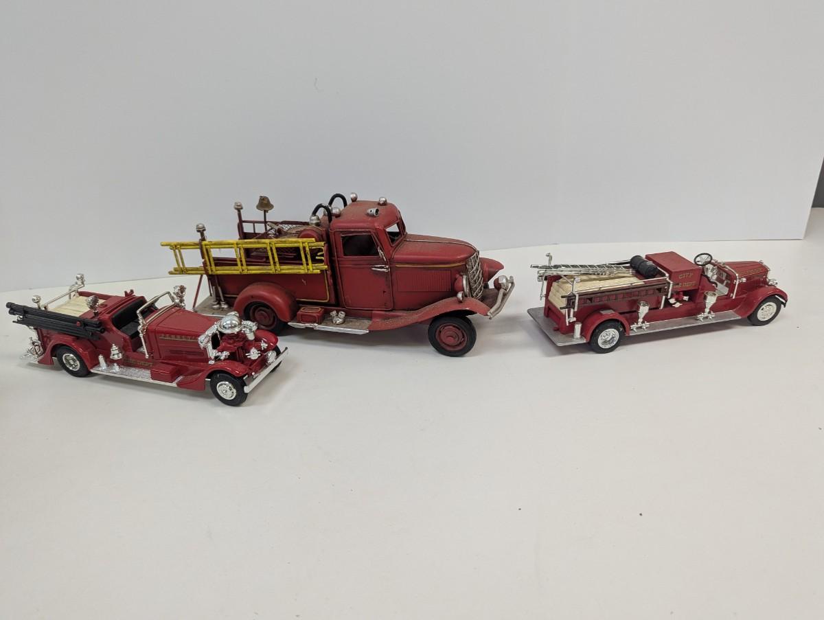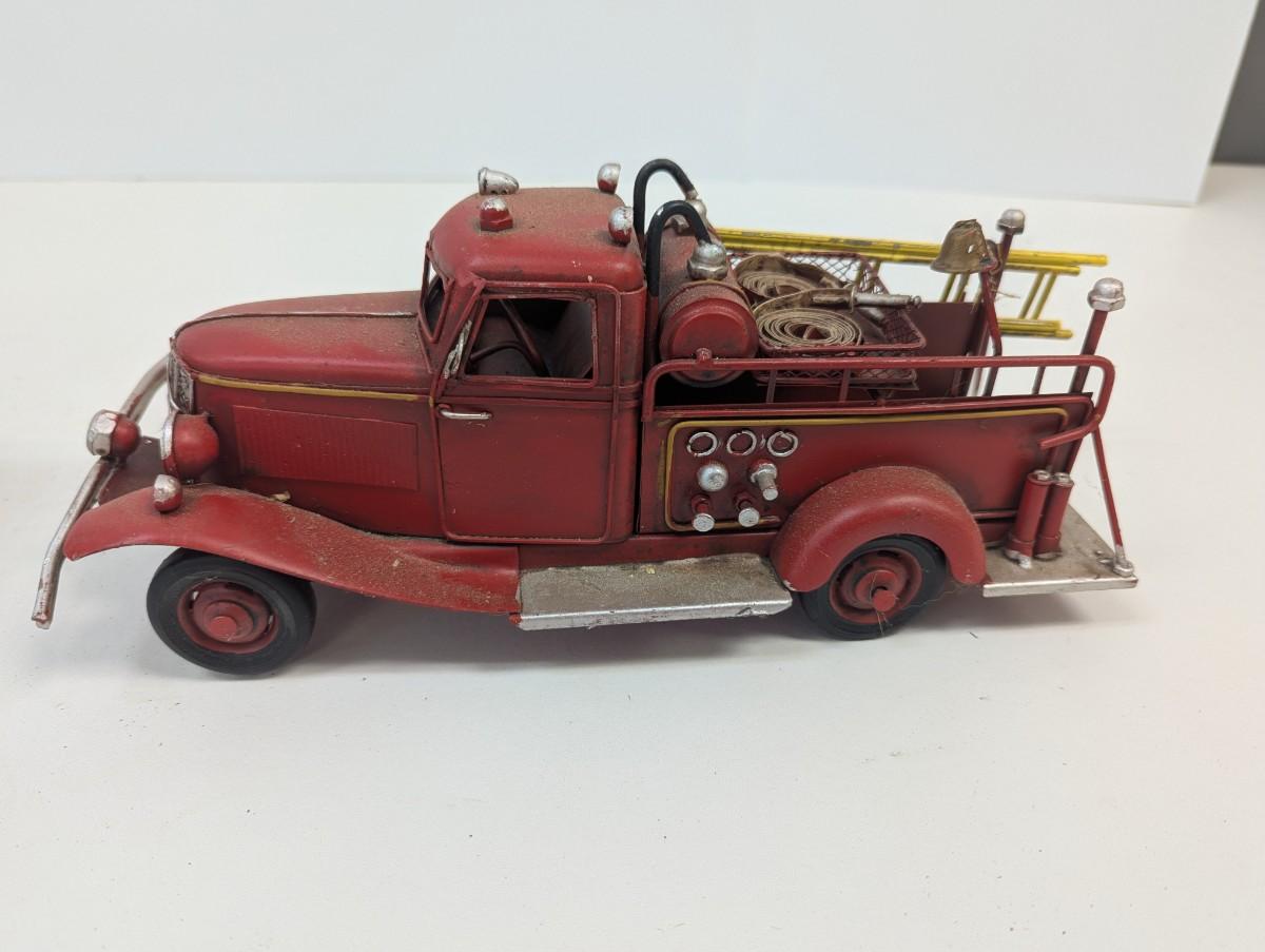 Vintage Style Red Firetruck All Metal Model Ladder Hose Bell Pump & Mack Pumper Firetruck & ERTL Firetruck