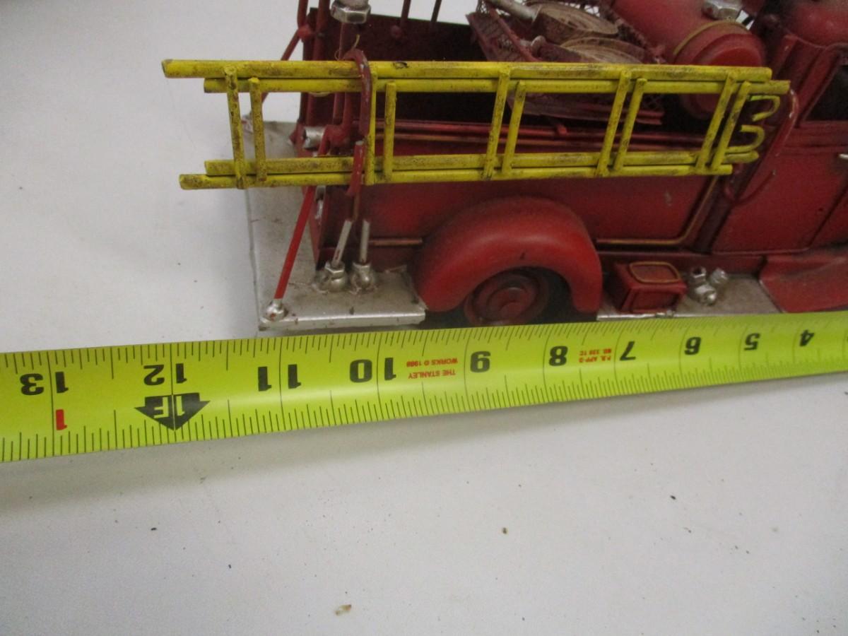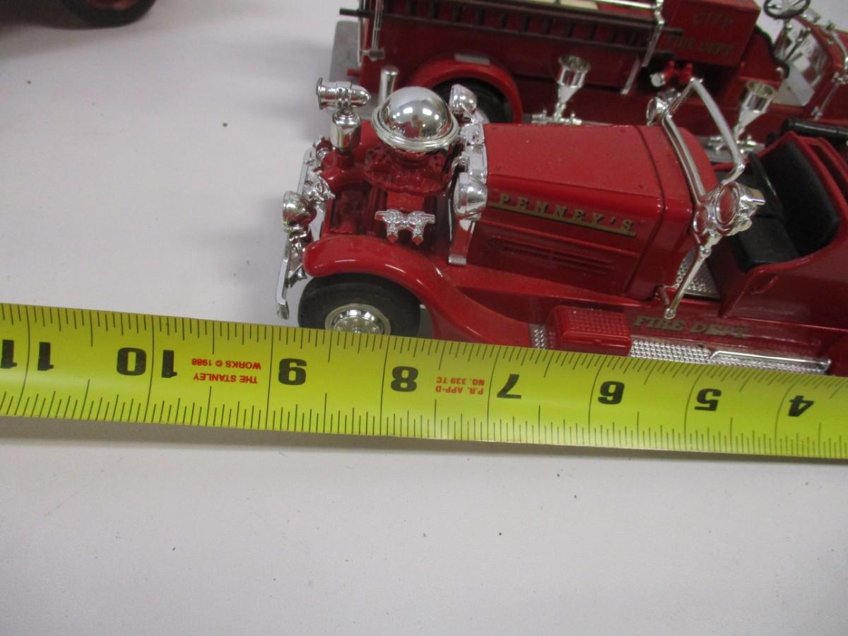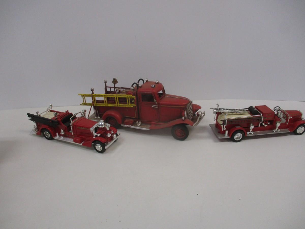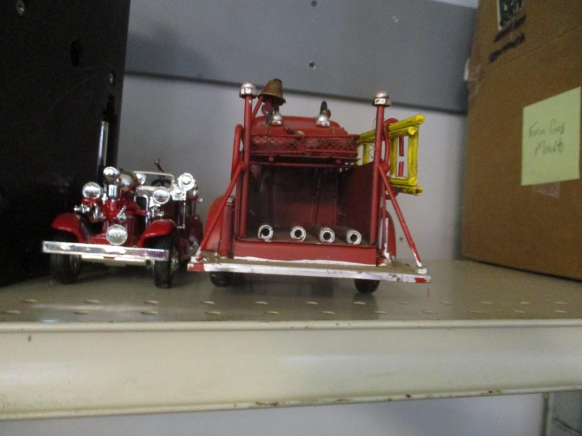 Vintage Style Red Firetruck All Metal Model Ladder Hose Bell Pump & Mack Pumper Firetruck & ERTL Firetruck