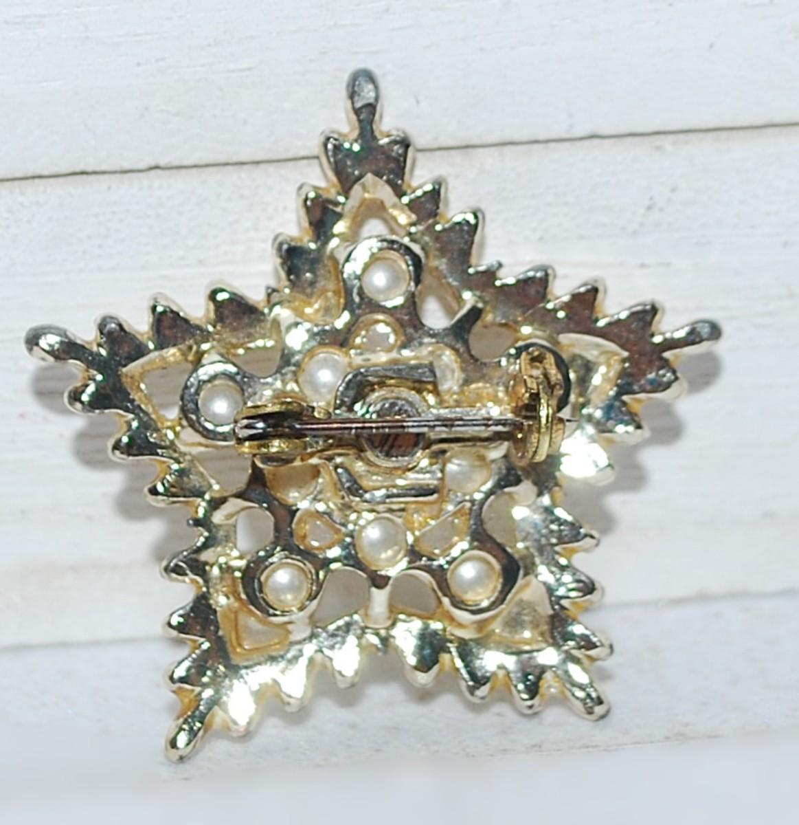 Vintage Style Set of 11 Faux PEARLS BROOCH (1¼" Diam.) on a 5 Point STAR & Gold Tone Setting
