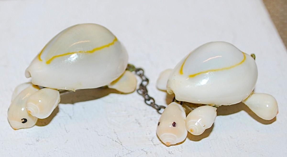Vintage Style Shaded Ceramic SHELL TURTLE PINS (1¼") Connected by Wire Chain
