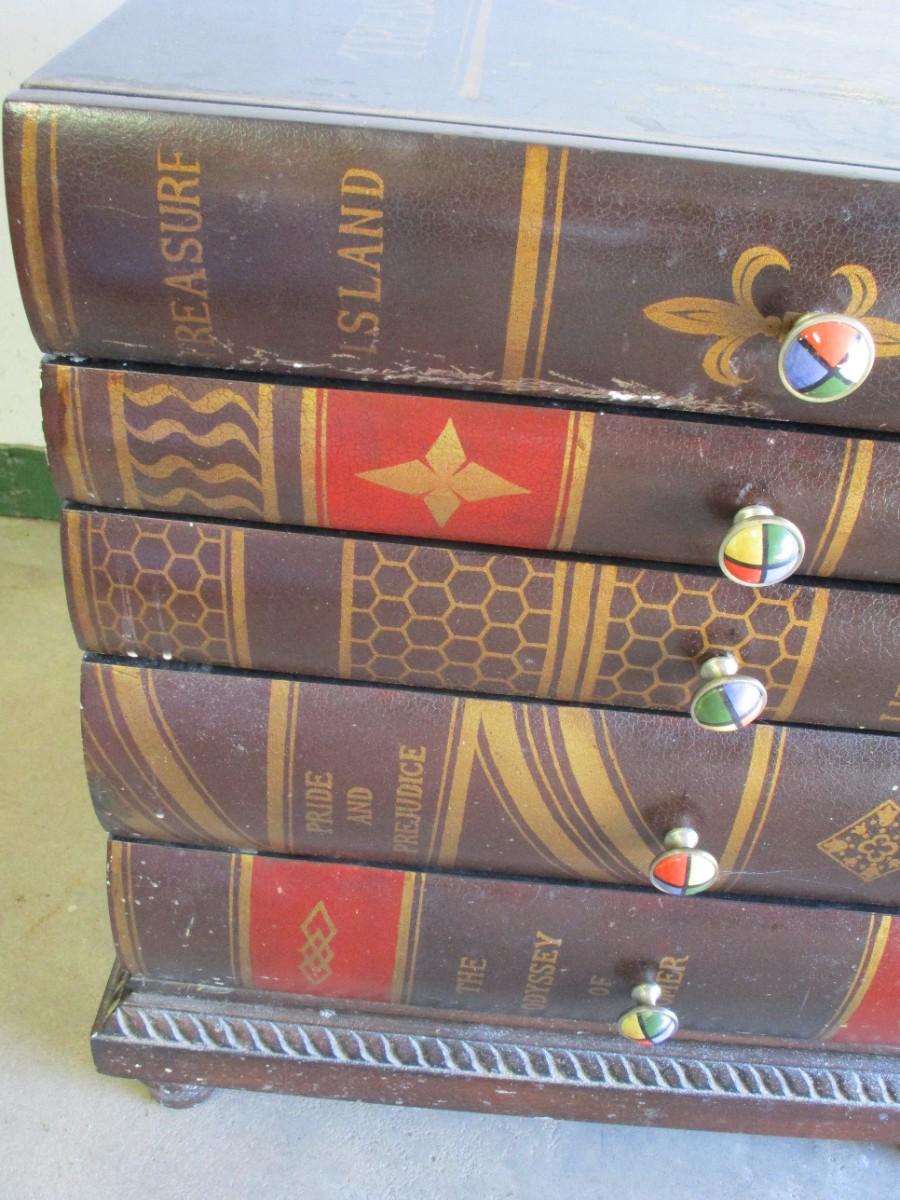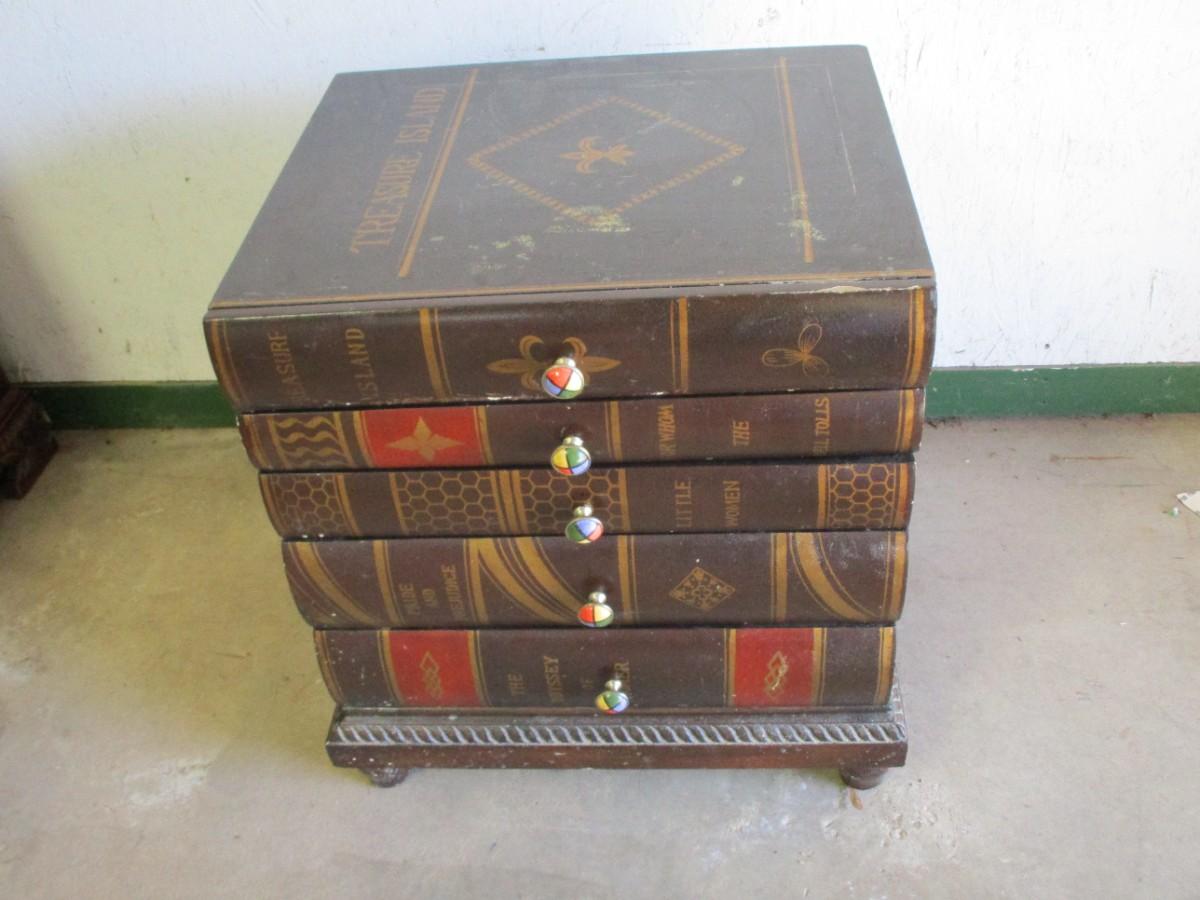 Vintage Style Stacked Book Design End Table With Drawers - Treasure Island  - The Odyssey