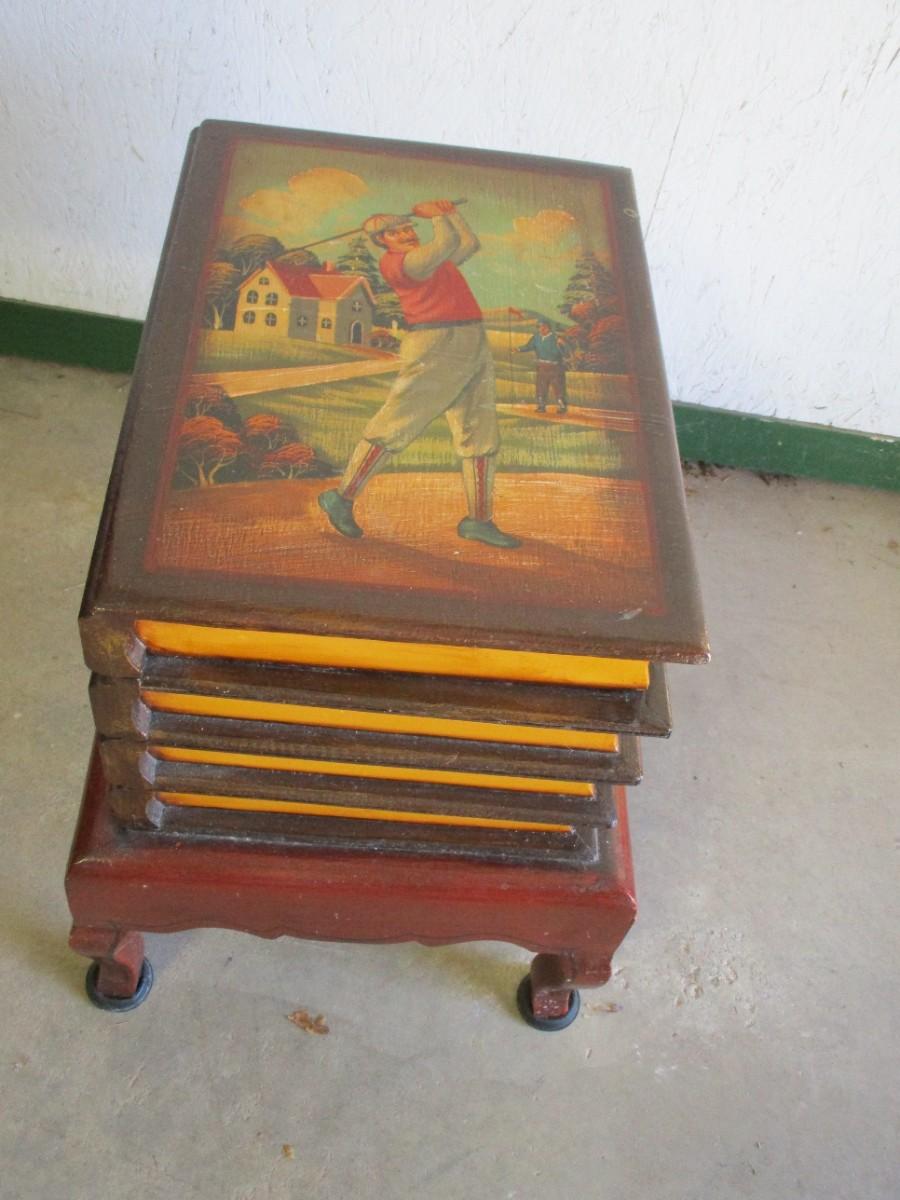 Vintage Style Stacked Book Design Chest - Golfing Design