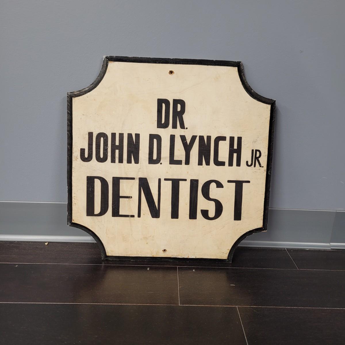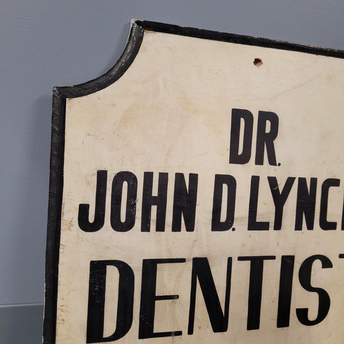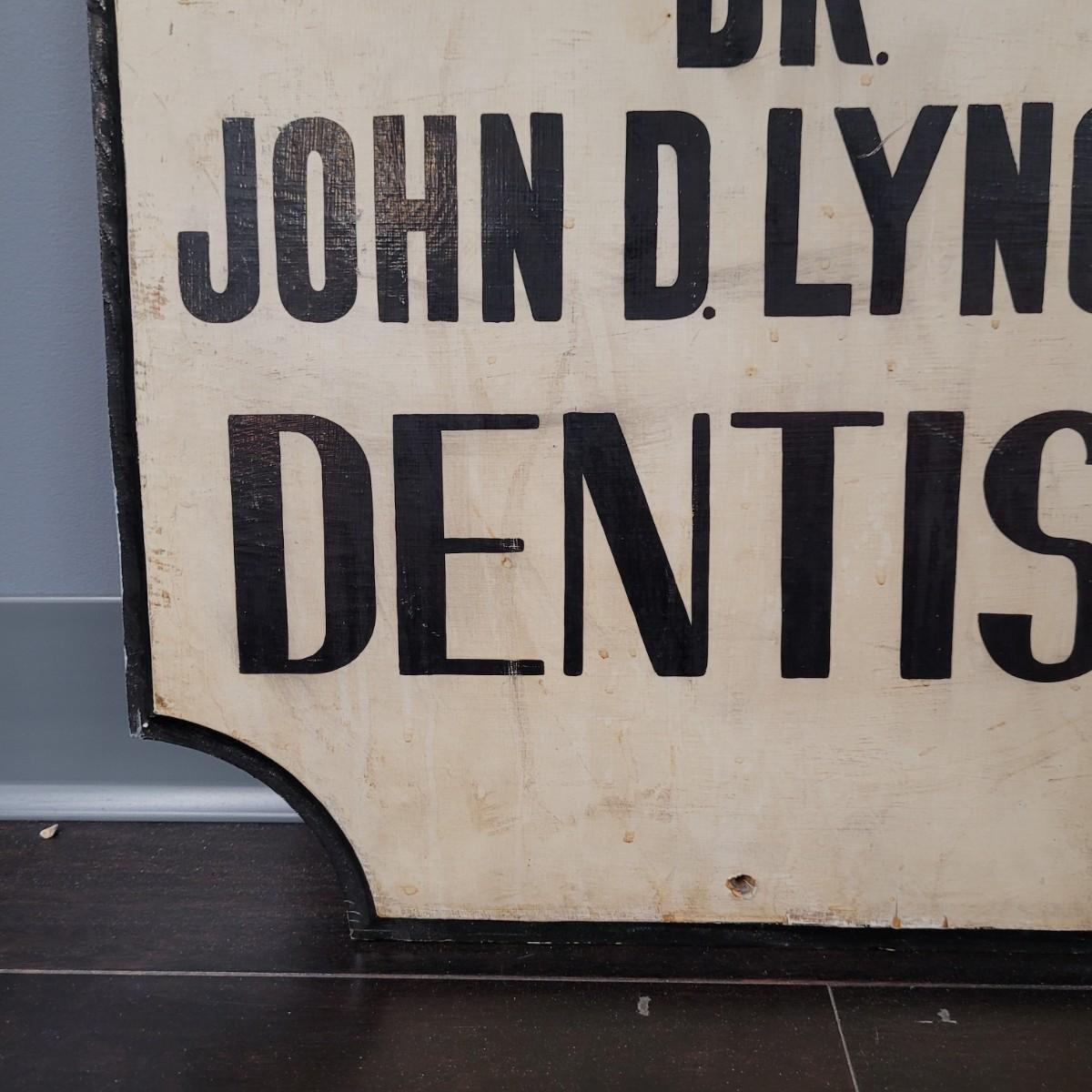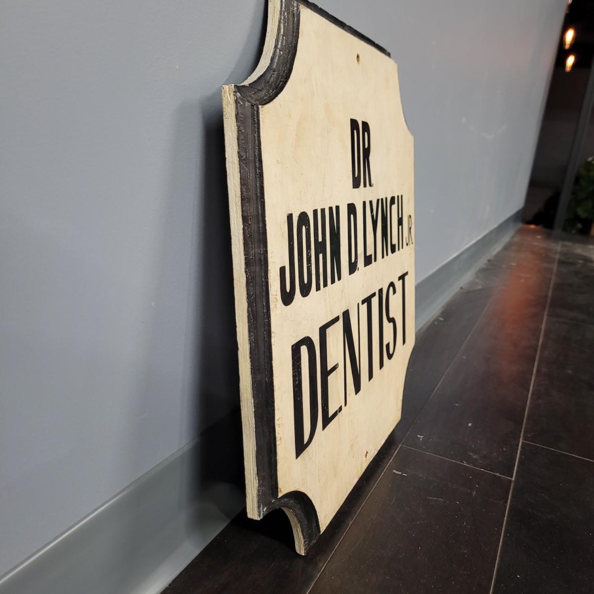 Vintage style wooden dentist sign. Cannot verify date. Appears to be solid wood. . Sign does show some wear in accordancewith its age, some paint peeling, slightly chipped corneres, etc. It appearsthat it was glued on the back at some time, seeattachedpictures. Measures approximately 18.5" sq. Shipping available.