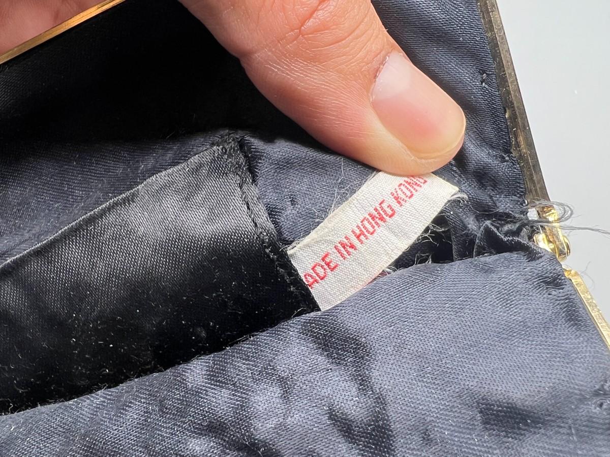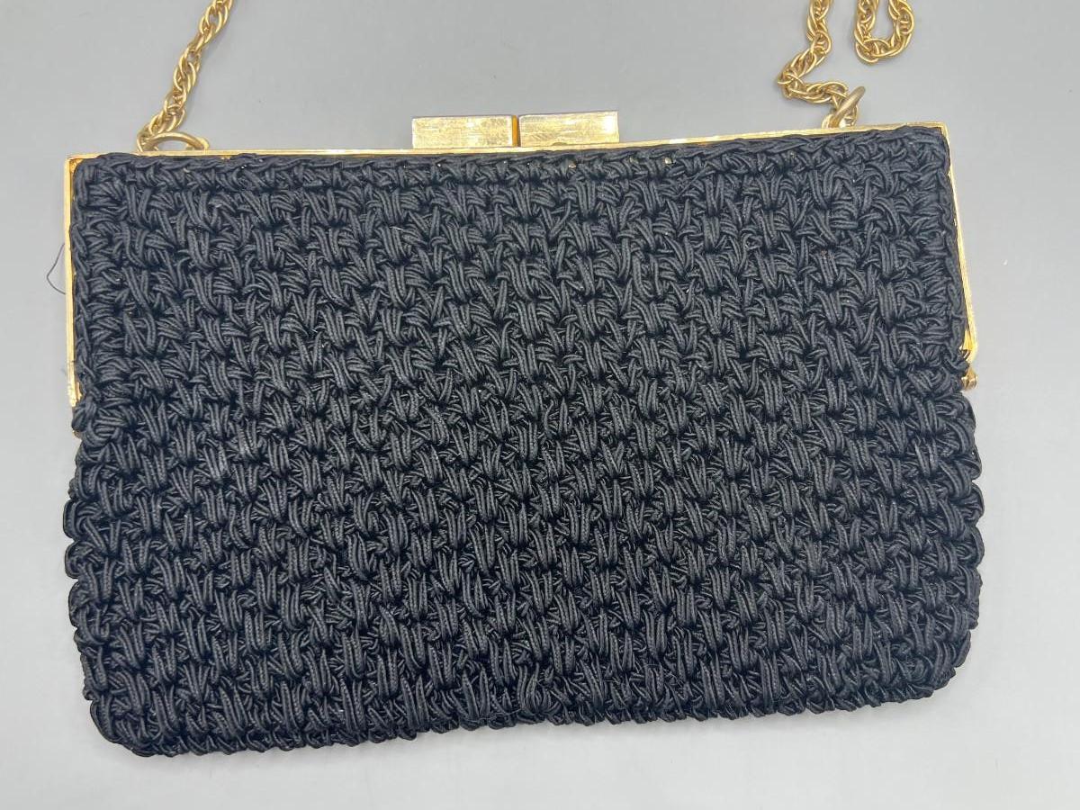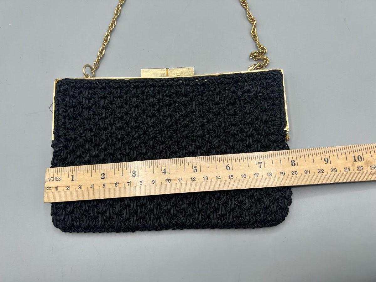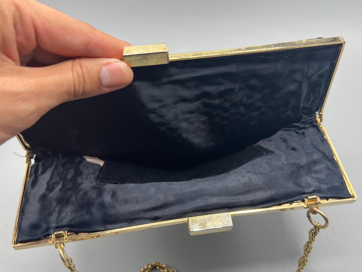 Vintage Styled Black & Gold Purse Clutch Shoulder Bag with Chain Strap. In good condition. Made in Hong Kong.