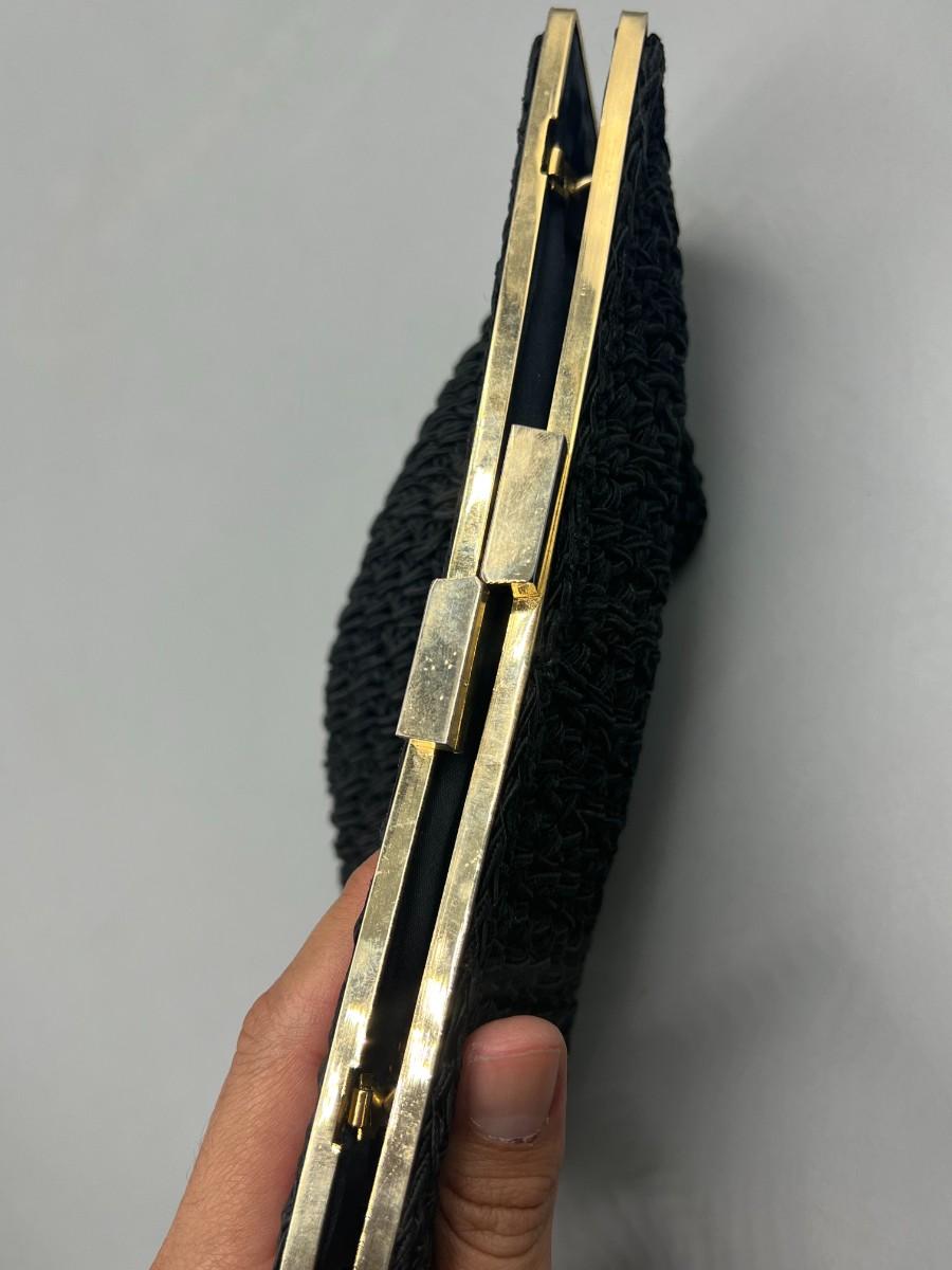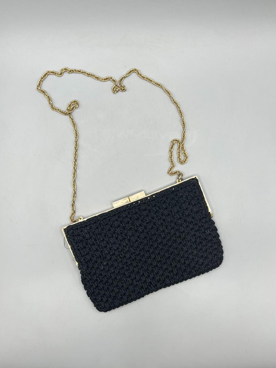Vintage Styled Black & Gold Purse Clutch Shoulder Bag with Chain Strap