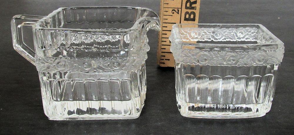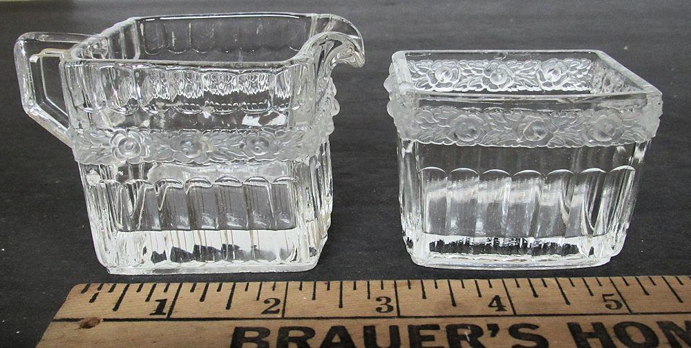 Vintage Sugar and Creamer on Tray Set, Frosted Roses, Unmarked