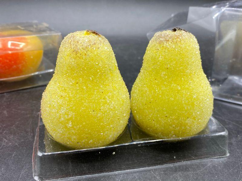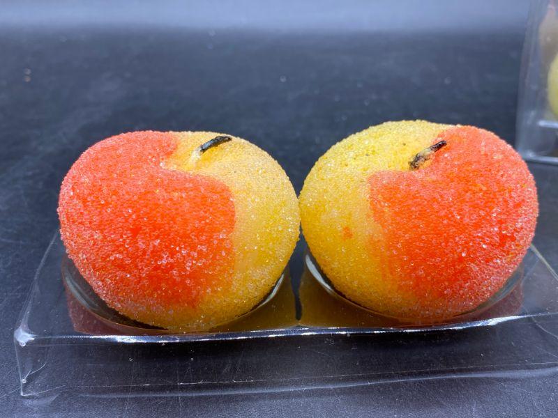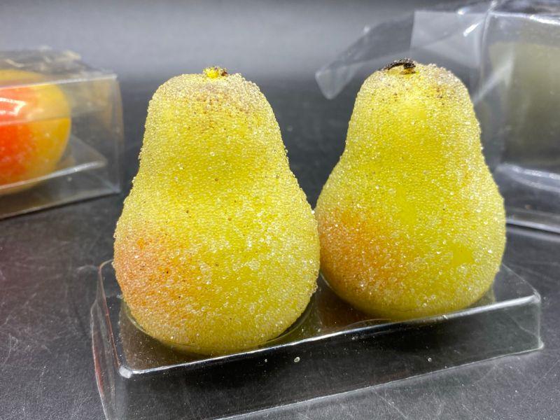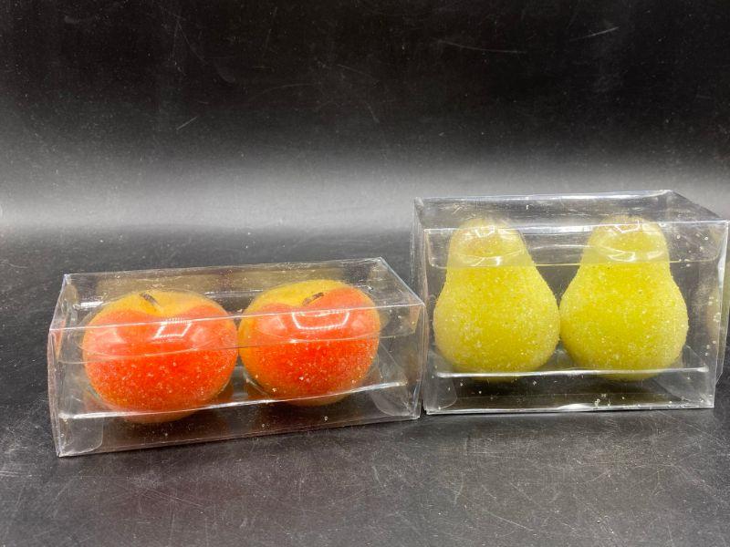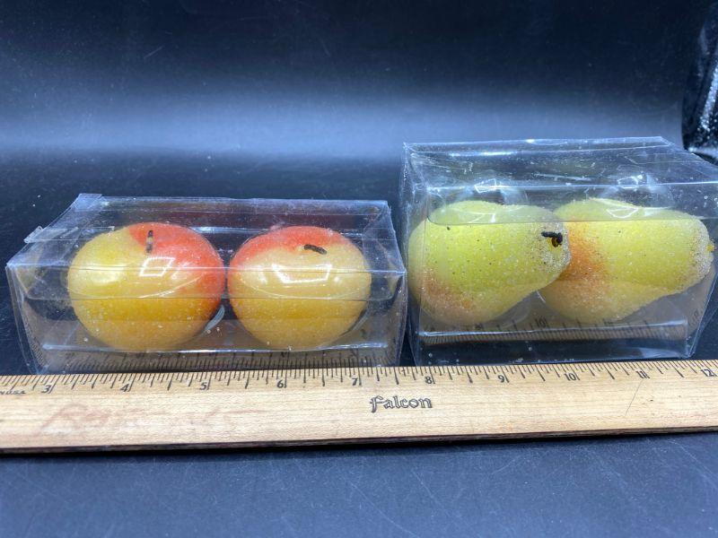 Vintage sugar fruit candles. Peaches and pears. Unused in original packaging. Fruit scented. Have a sugar like coating on the outside.
