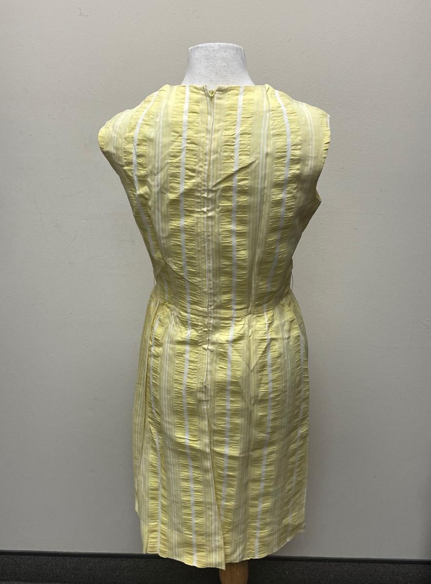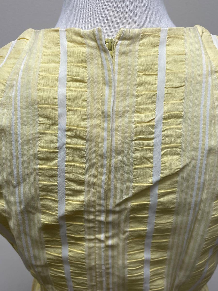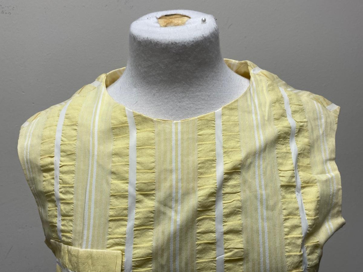 This dress is in great condition and is wrinkled due to being folded. There is a pocket in the front but it doesn’t hold anything. The zipper works great on the dress. There is no noticeable stains. It seems to fit a size small or medium.