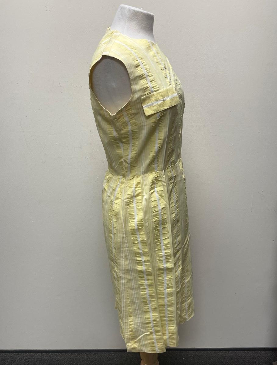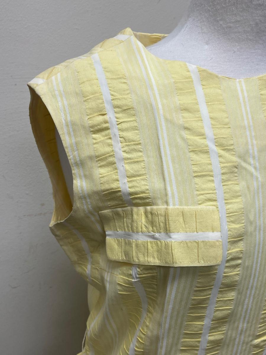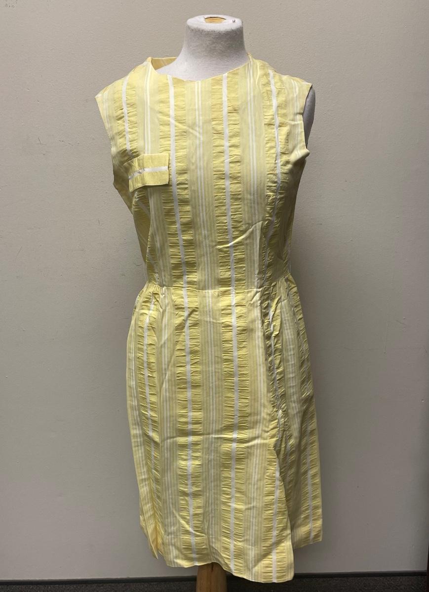 This dress is in great condition and is wrinkled due to being folded. There is a pocket in the front but it doesn’t hold anything. The zipper works great on the dress. There is no noticeable stains. It seems to fit a size small or medium.