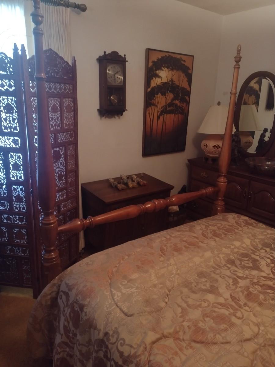 Vintage Sumter Furniture Full Size Four Poster Bed with Mattress Set