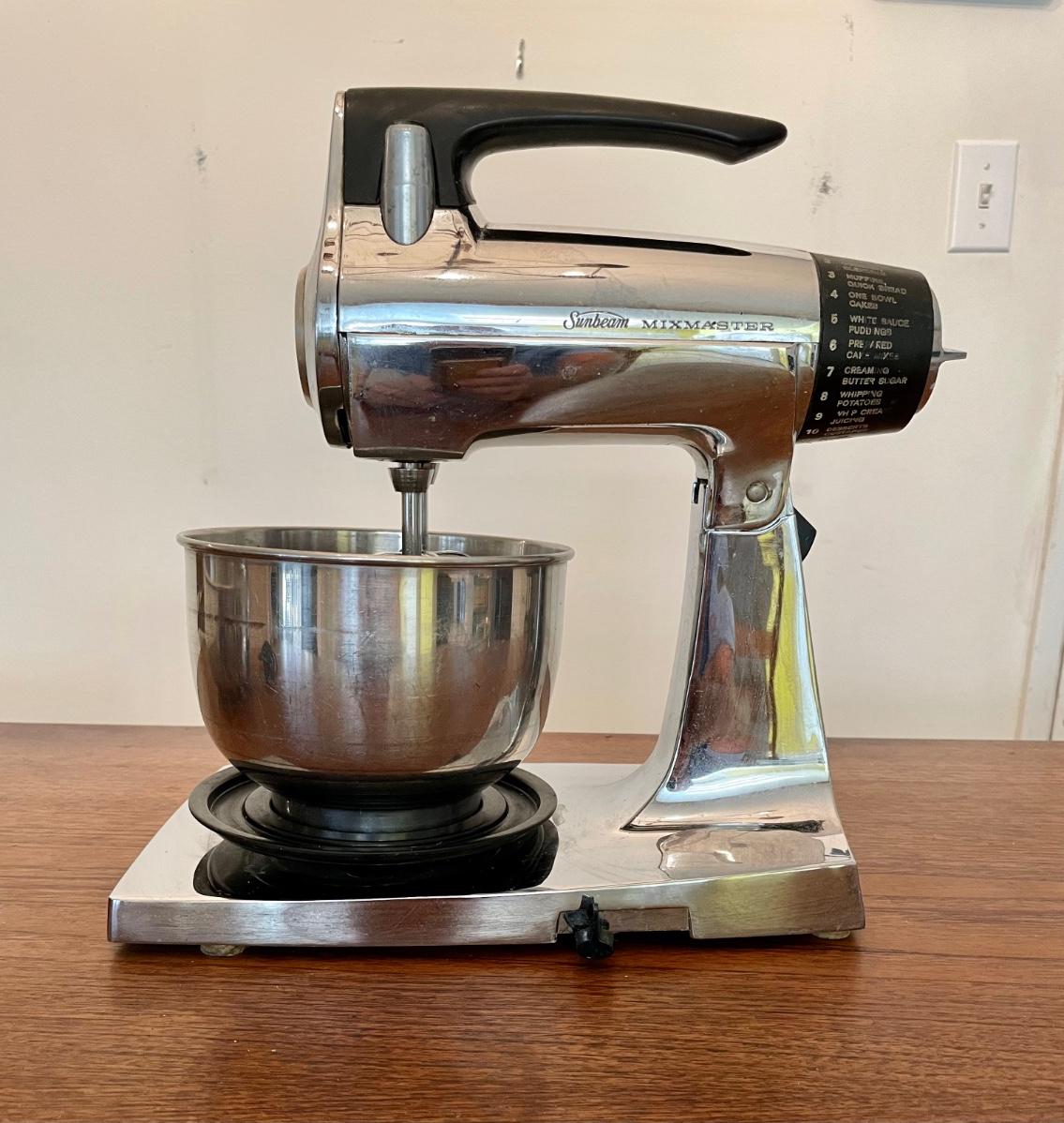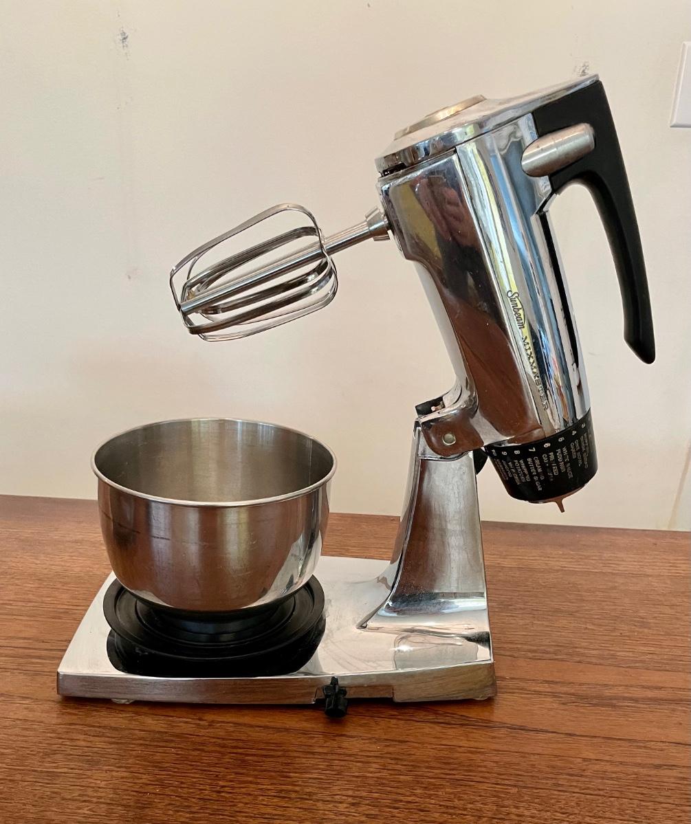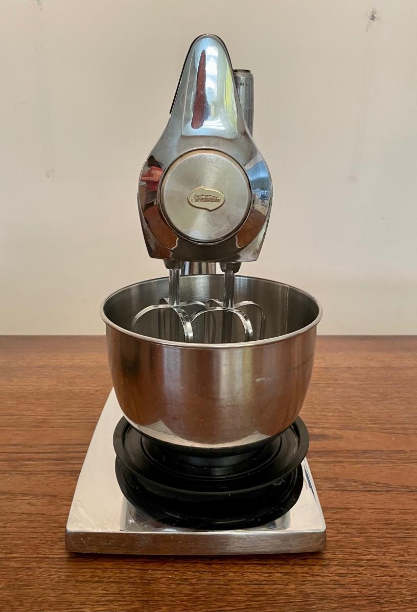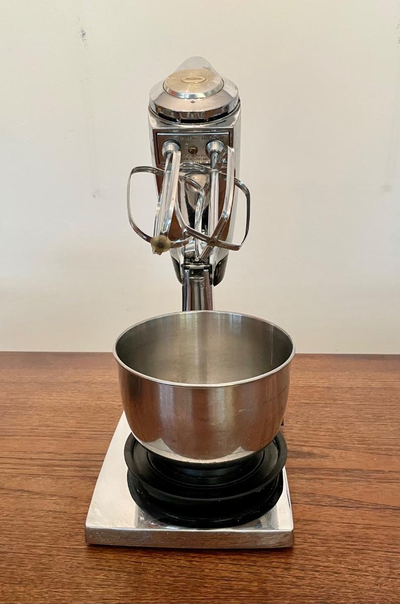 Vintage chrome mixer with beaters, 2 bowls, and original cord. Fully tested.