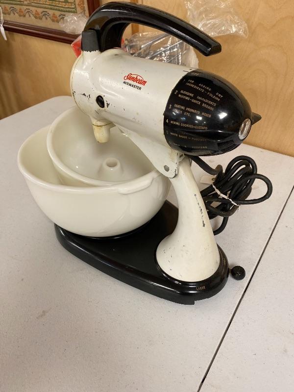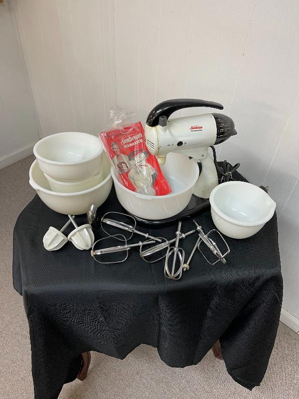Vintage Sunbeam Mixmaster with 5 Milkglass Bowls