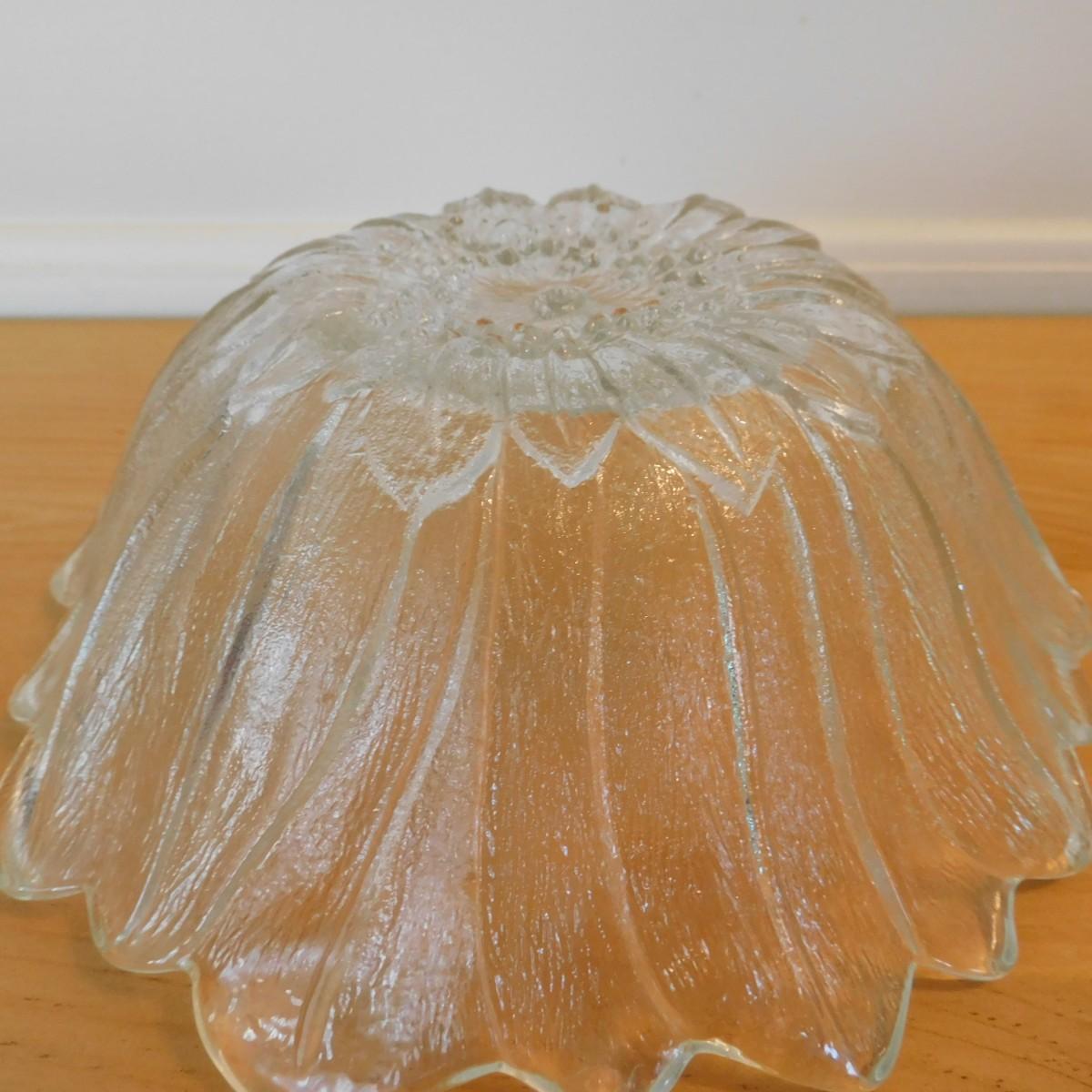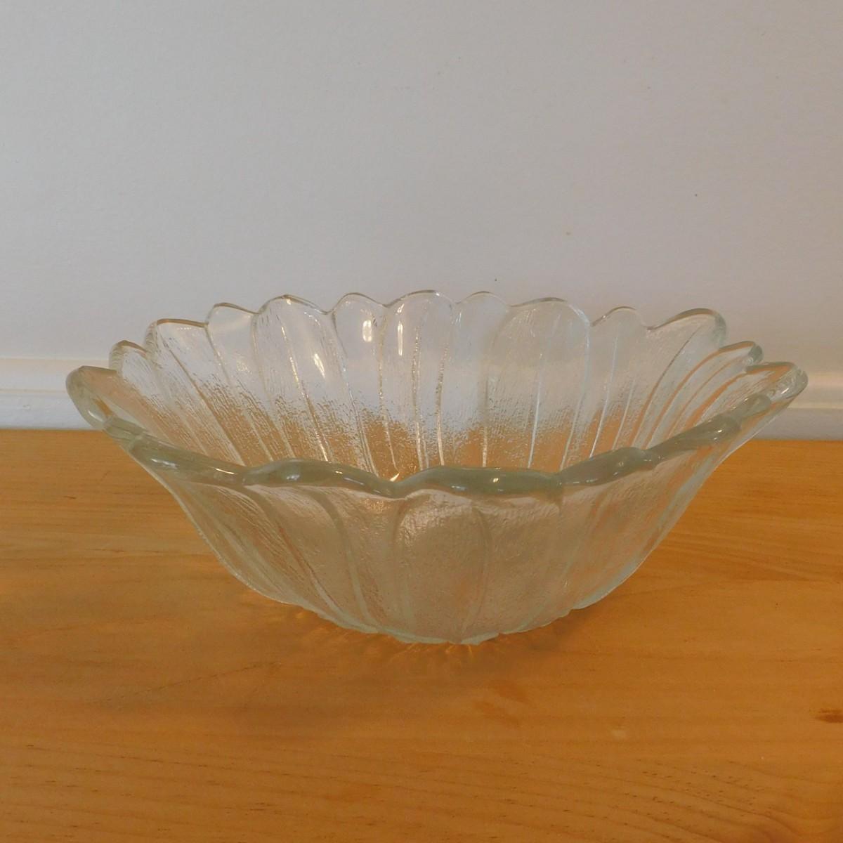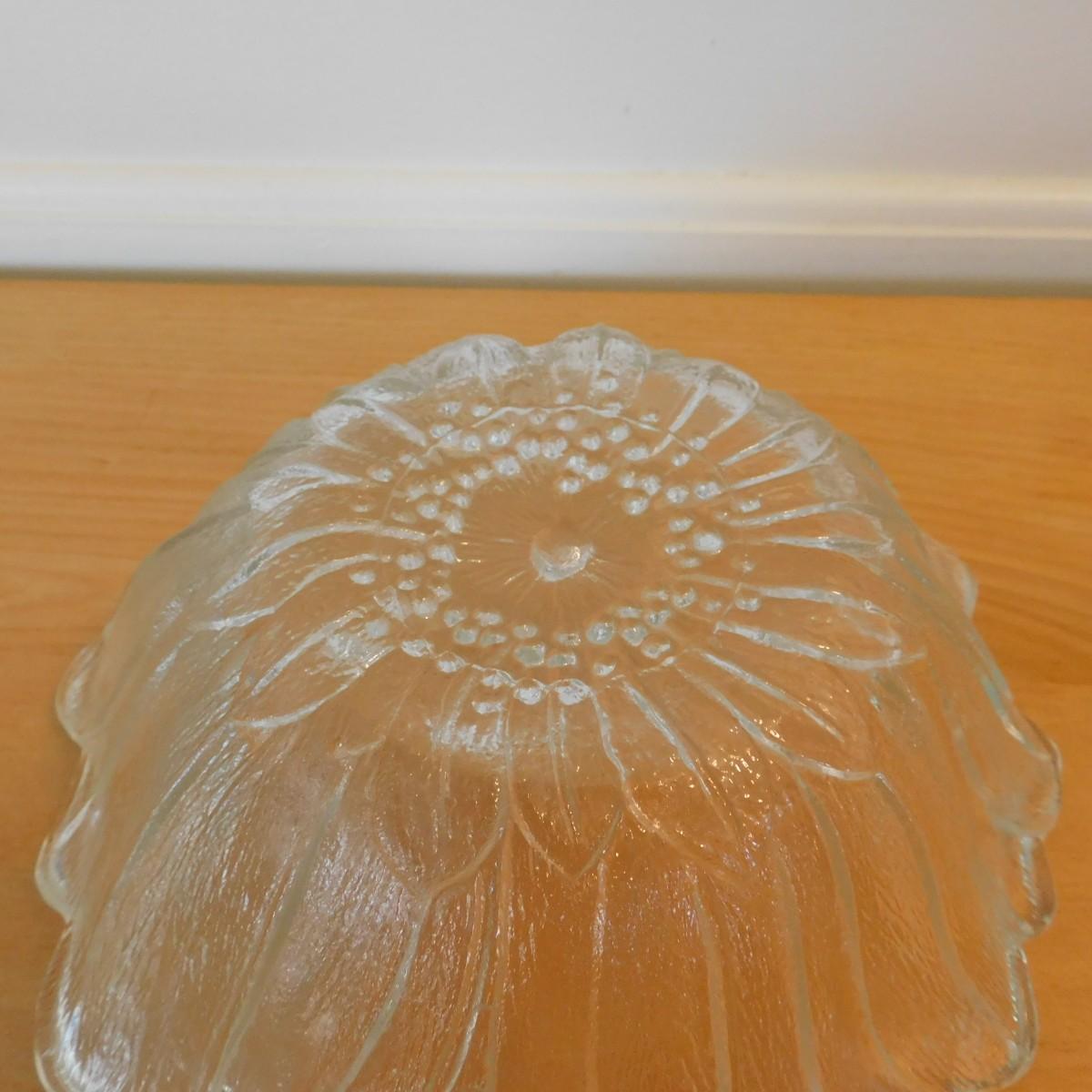 This vintage sunflower Indiana Glass serving bowl would be a very decorative item for a collection. It is about 7” x 2 1/2”.