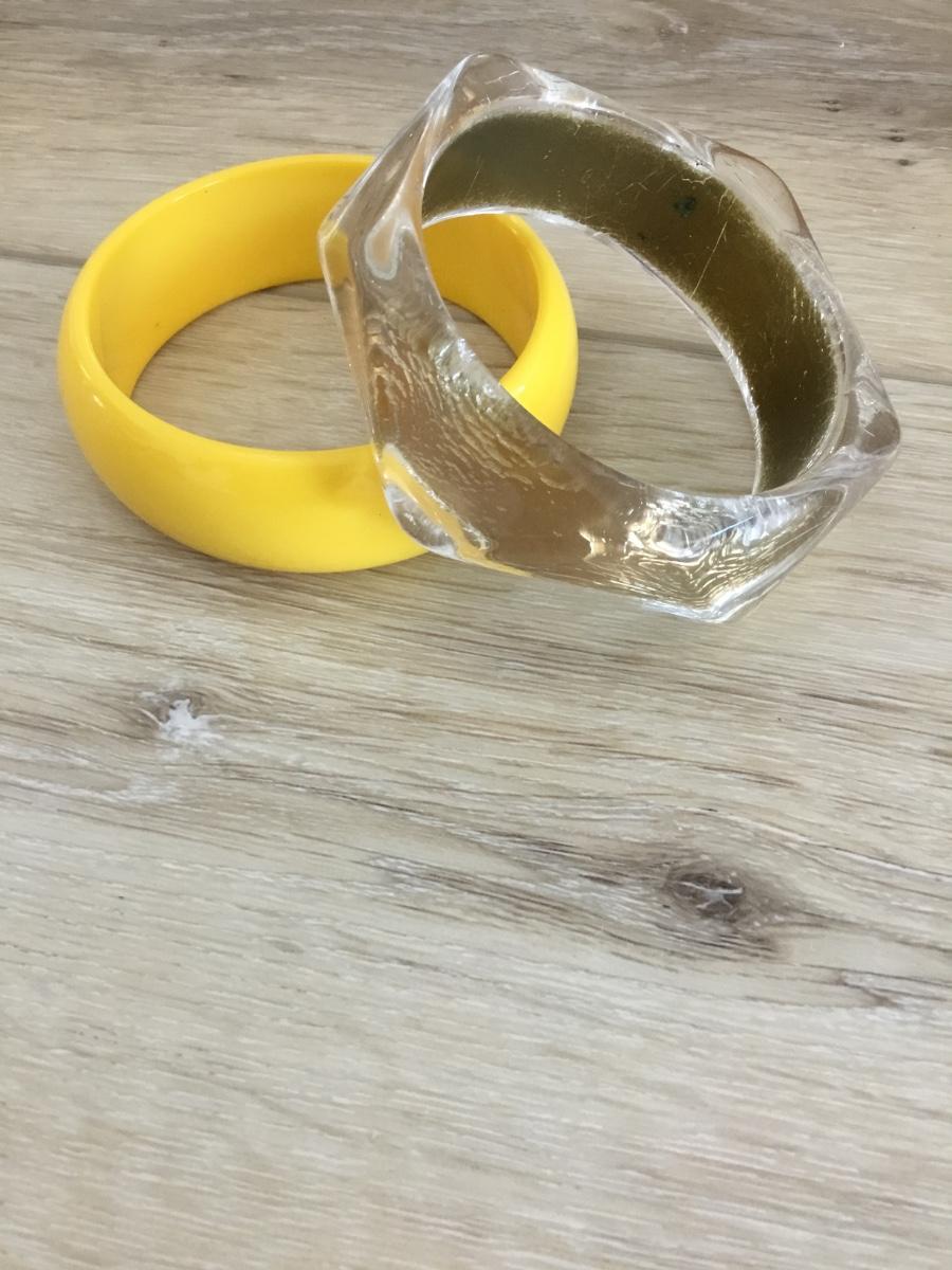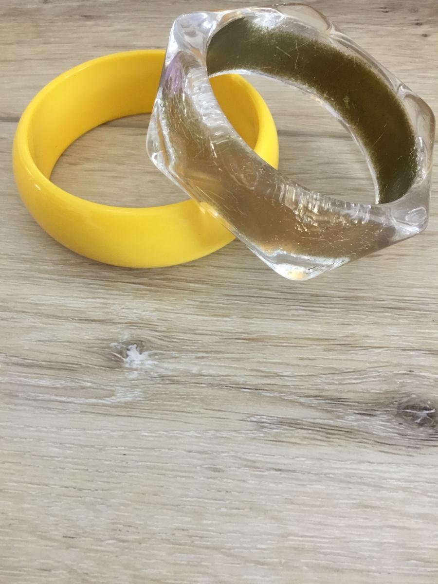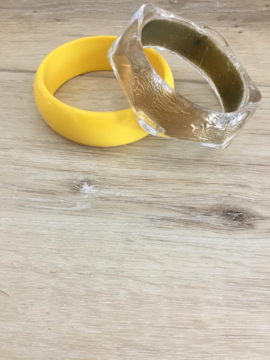 Vintage sunshine, yellow, and clear With gold crackle, accent bangle bracelets