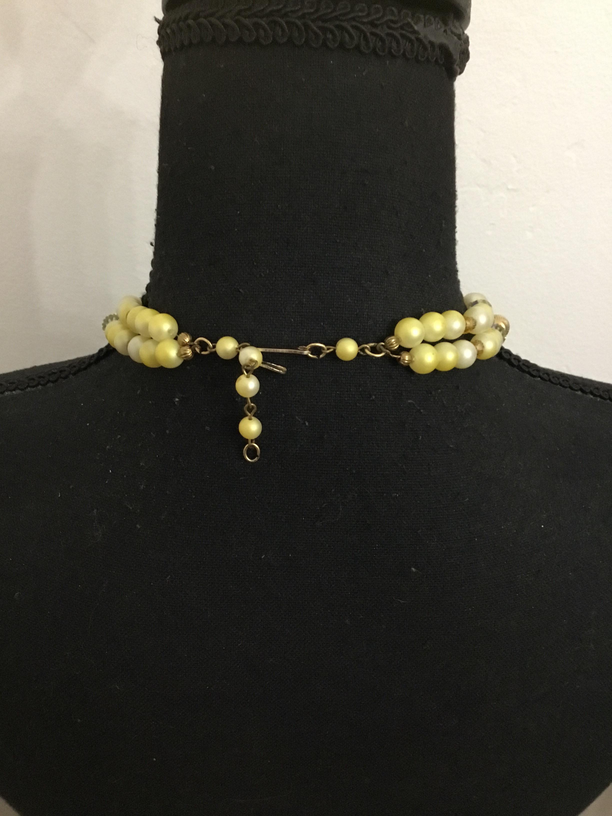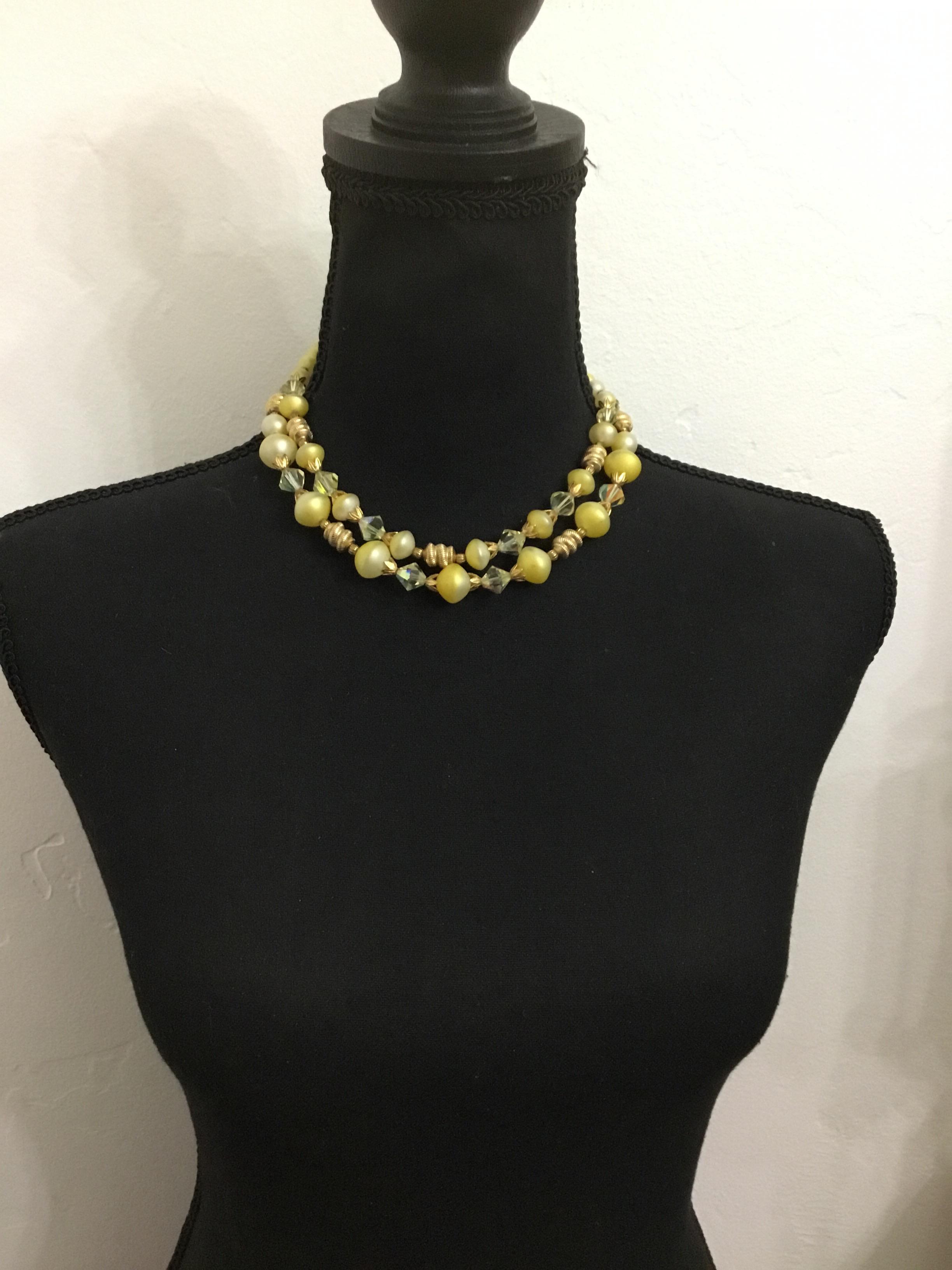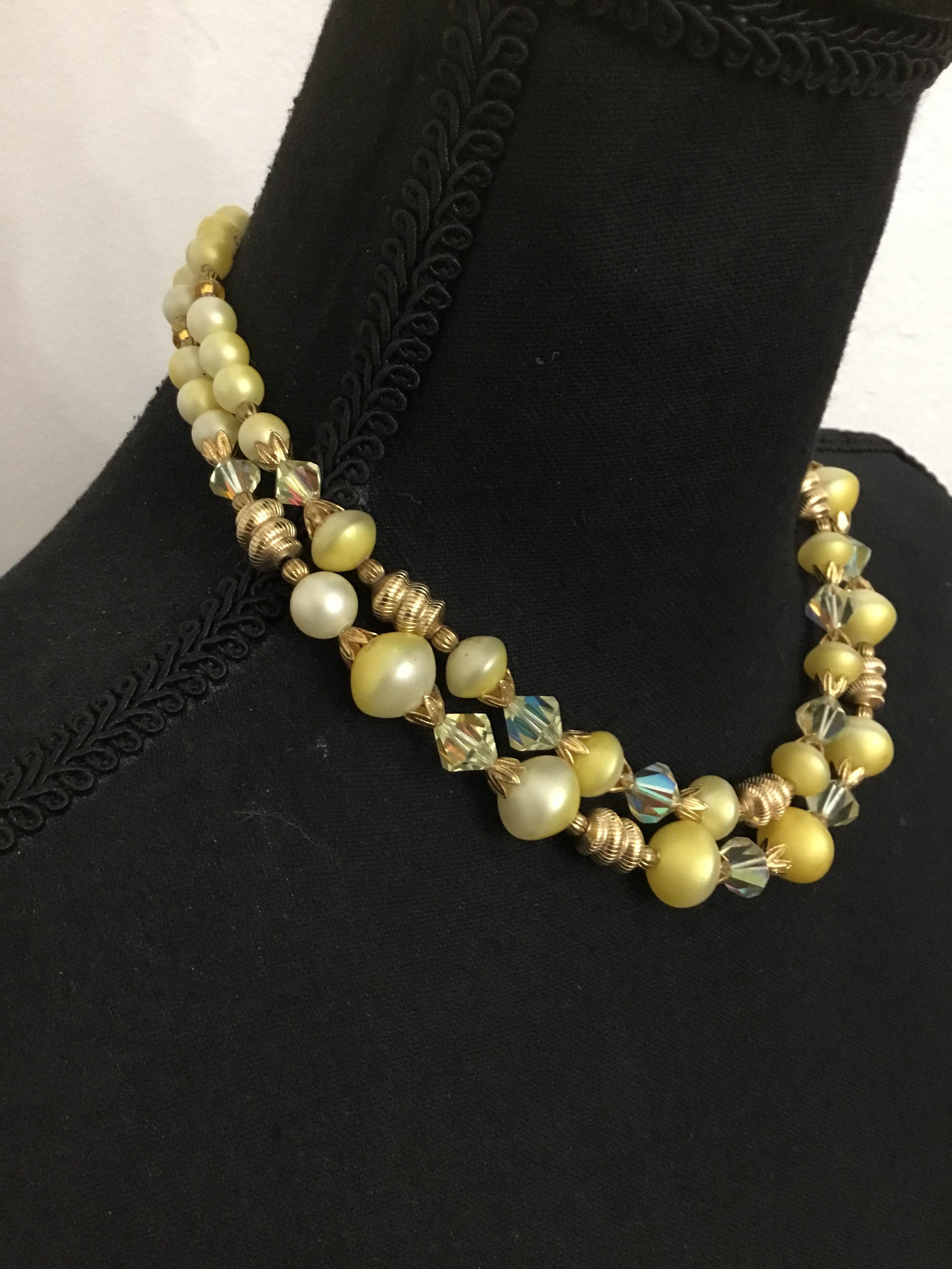 Vintage sunshine, yellow, gold, toned, crystal bead, double strand necklace