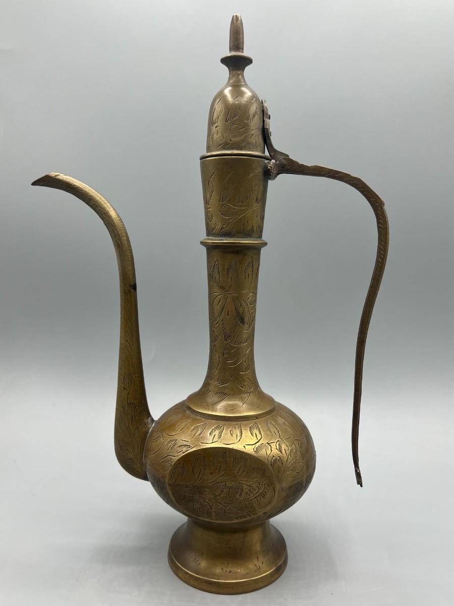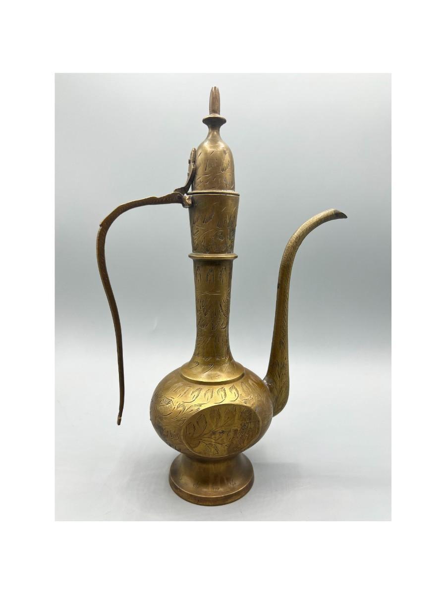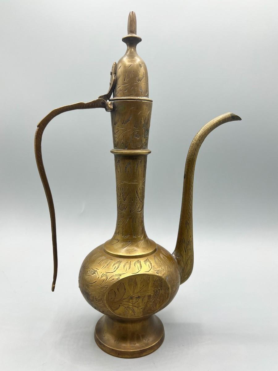 Vintage Surah Dallah Etched Coffee Tea Brass Made in India Teapot