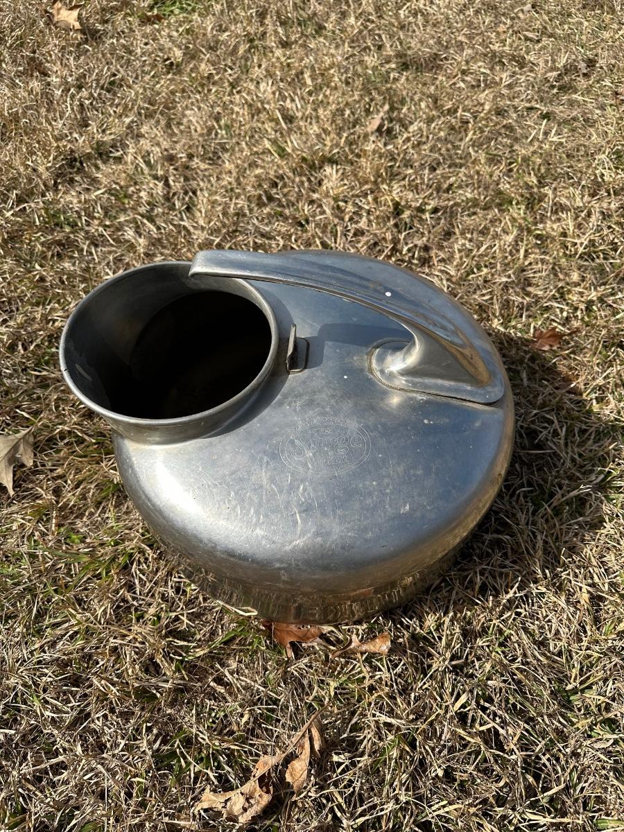 Original vintage aluminum Surge milk can / milker, a classic piece of American dairy-farm equipment. This is a real working-era can, not decorative reproduction.