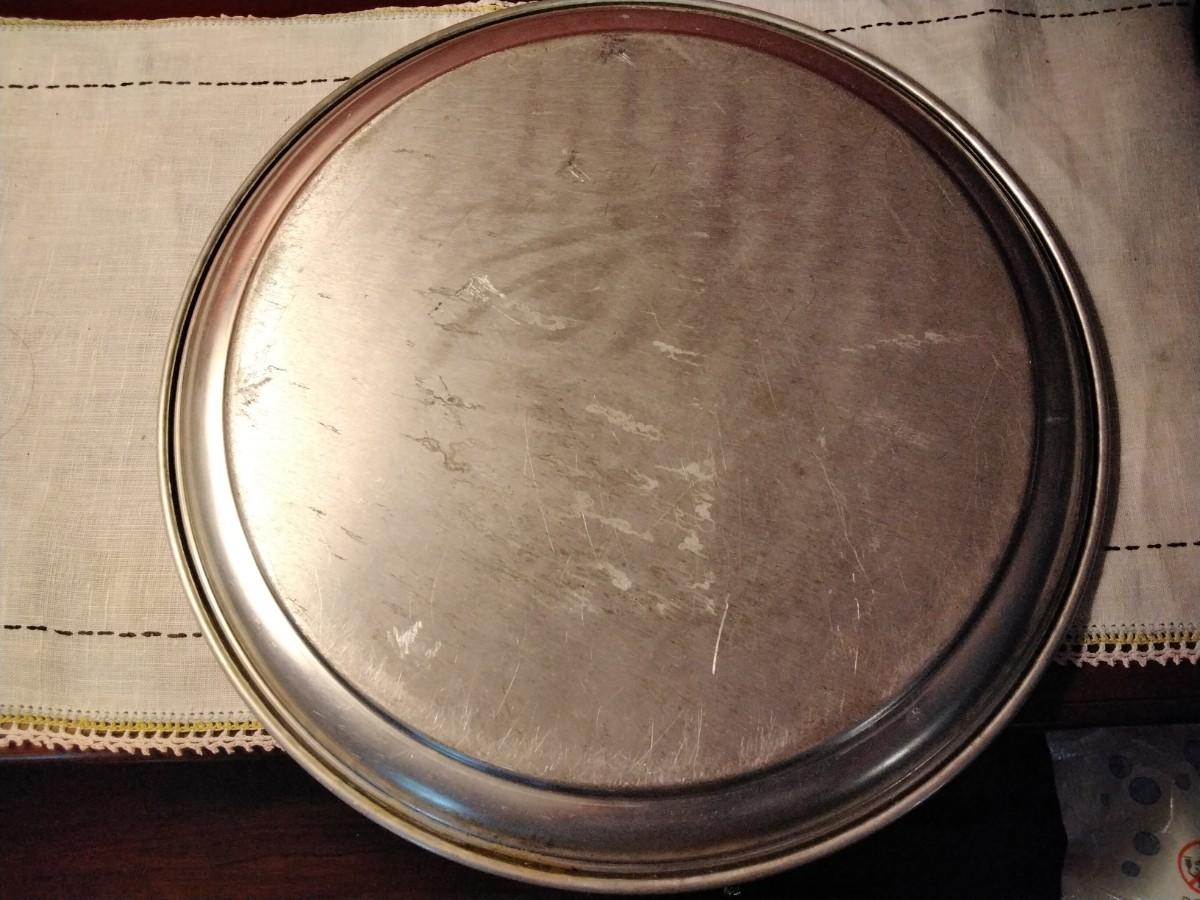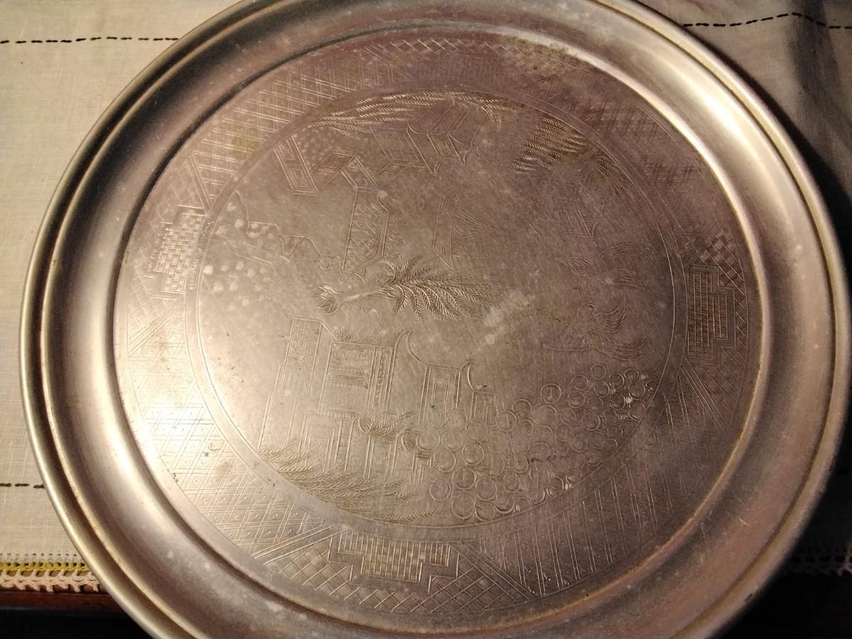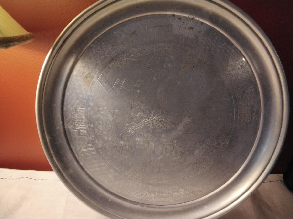 Vintage Swan Brand Chrome Serving Tray with Chinese Willow Pattern
