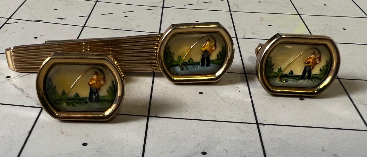Vintage SWANK Fly Fisherman Cufflinks and Tie Bar