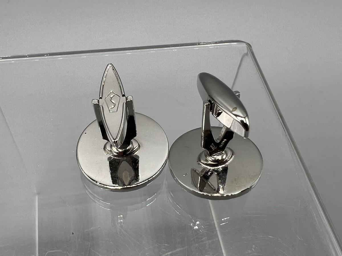 Vintage Swank Silver Tone Rhinestone Center Cuff Links