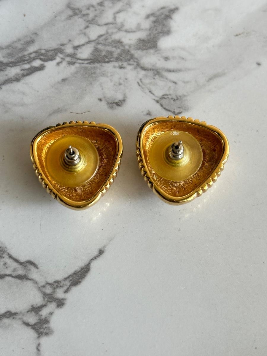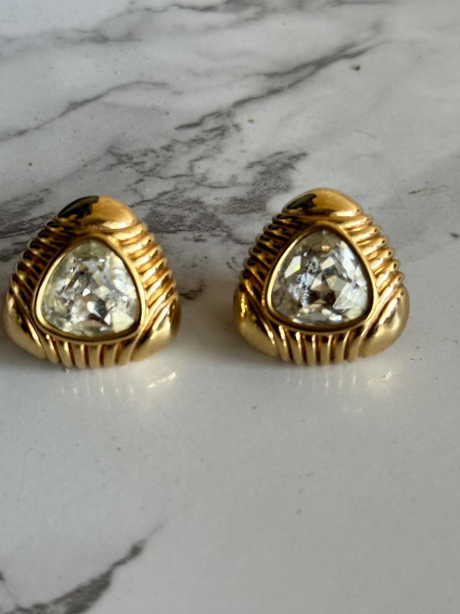 Vintage Swarovski Sean Signed Gold Tone Triangle Crystal Clip On Earrings
