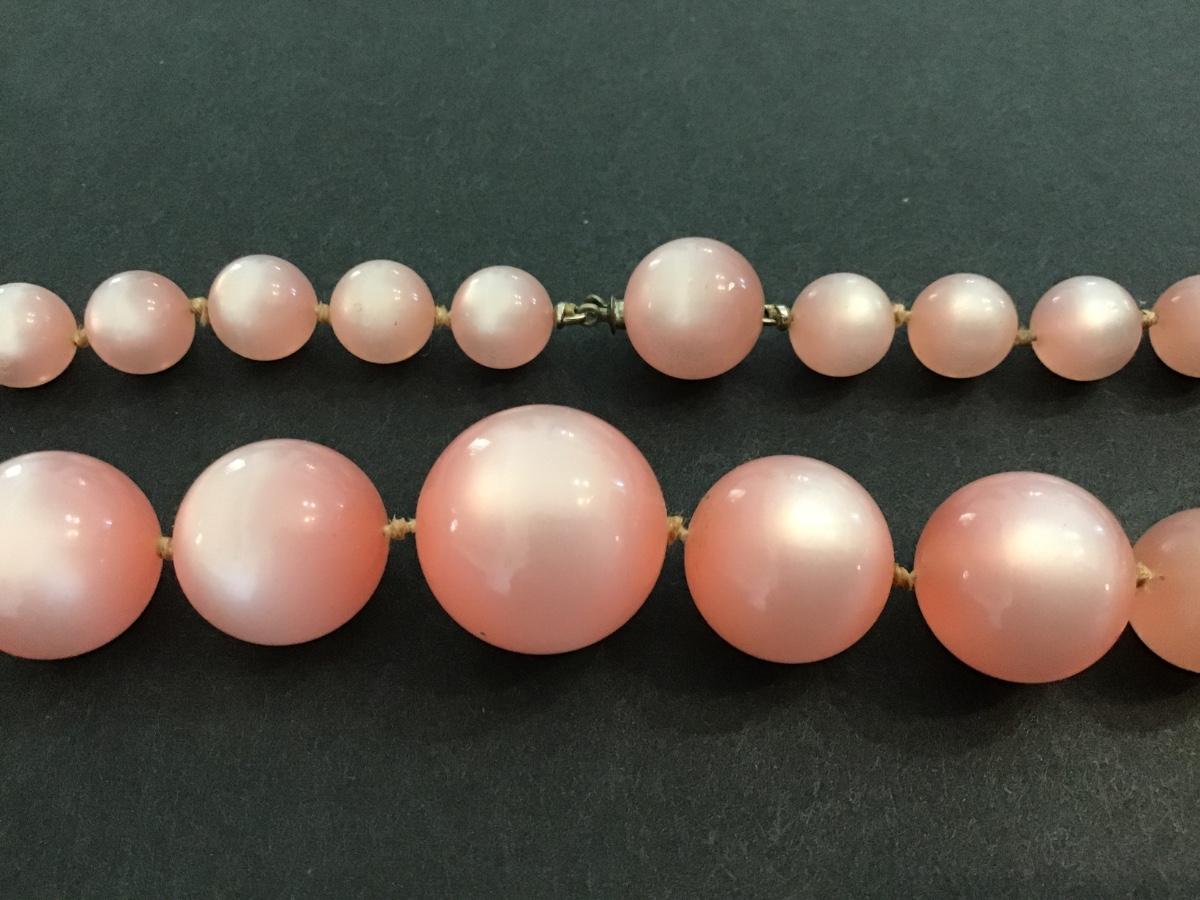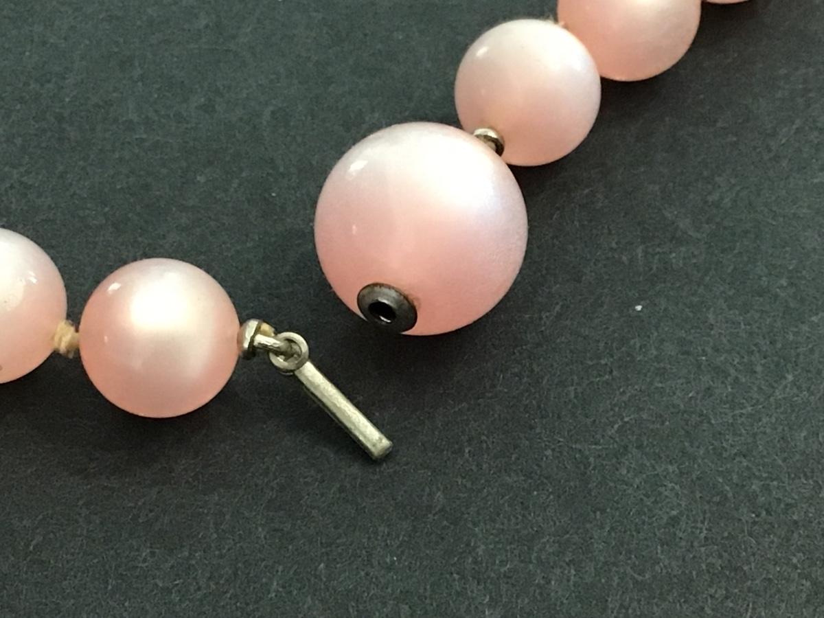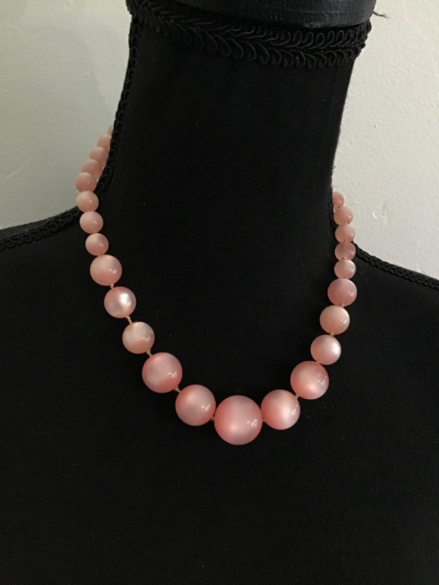Vintage, Sweet pink Moon glow beaded knotted necklace