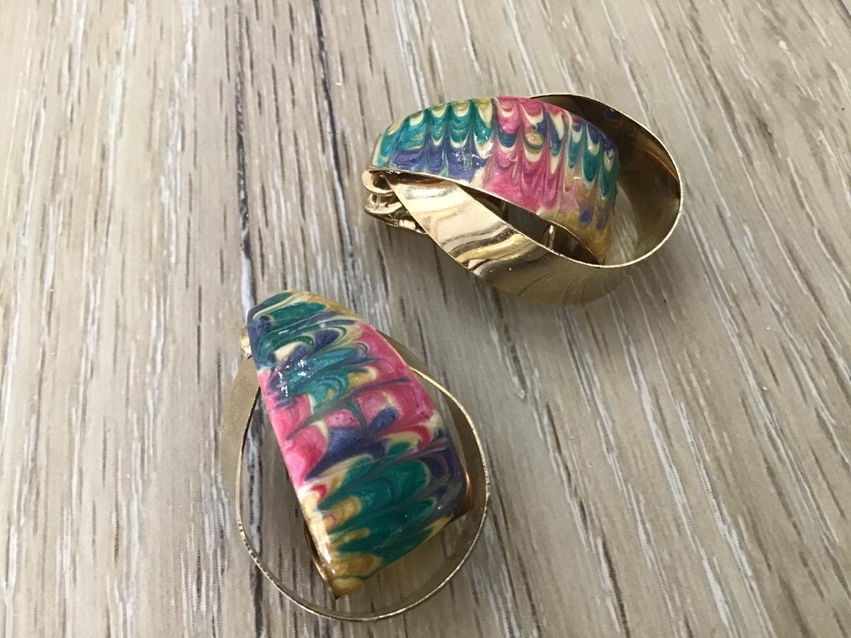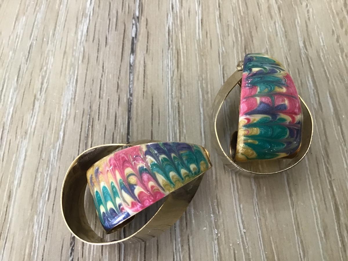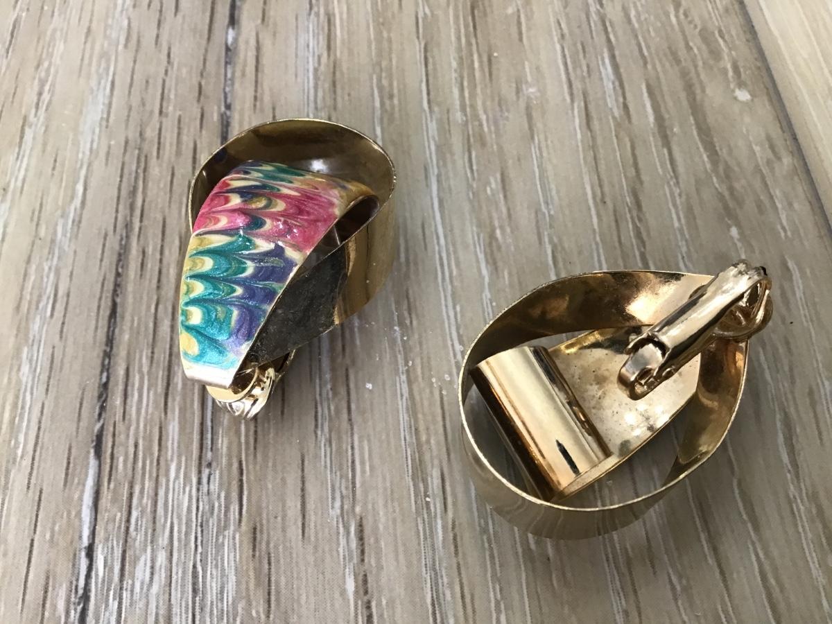 Vintage Swirl Gold Tone Enamel clip on earrings