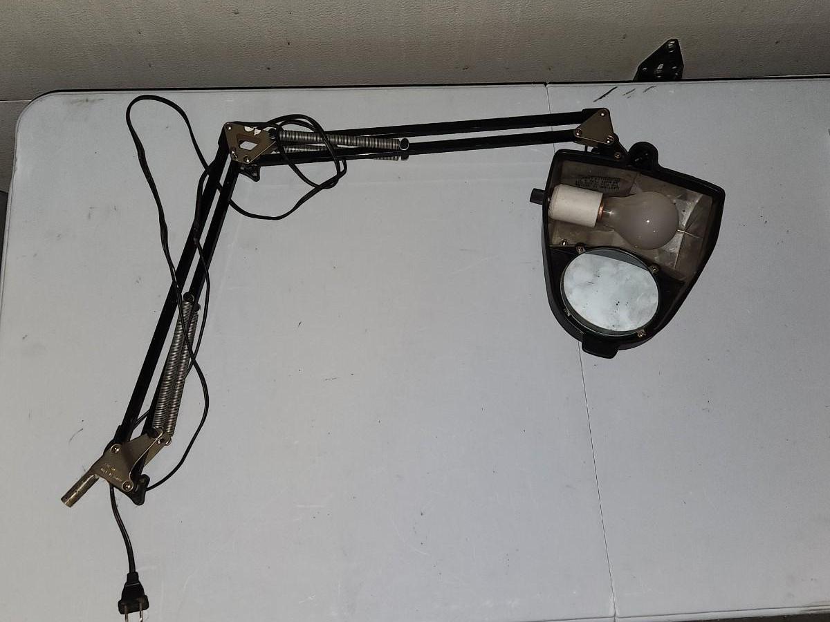 Vintage Swiveling Desk Magnifying Glass Lamp W/ Light. Working and has desk clamp as well.