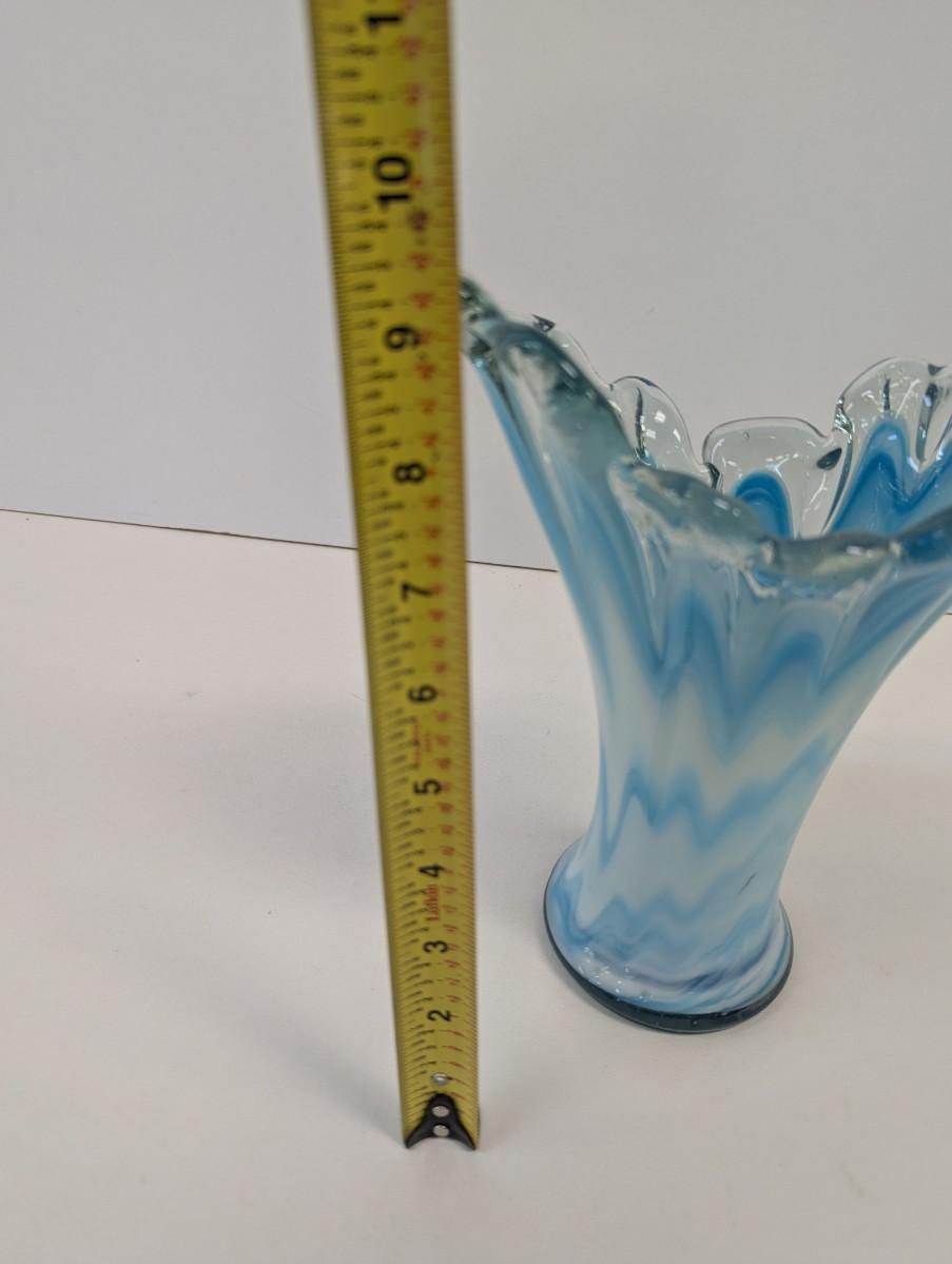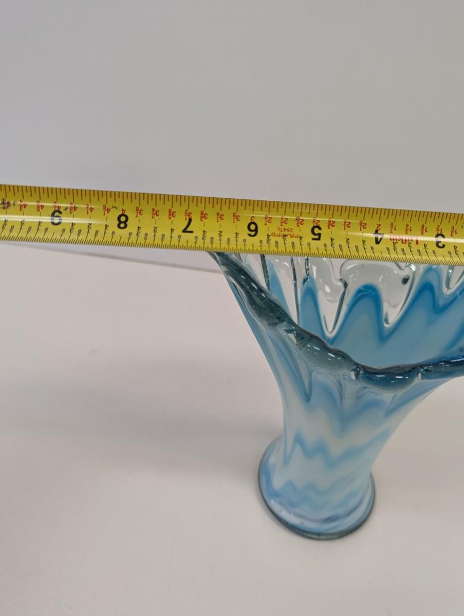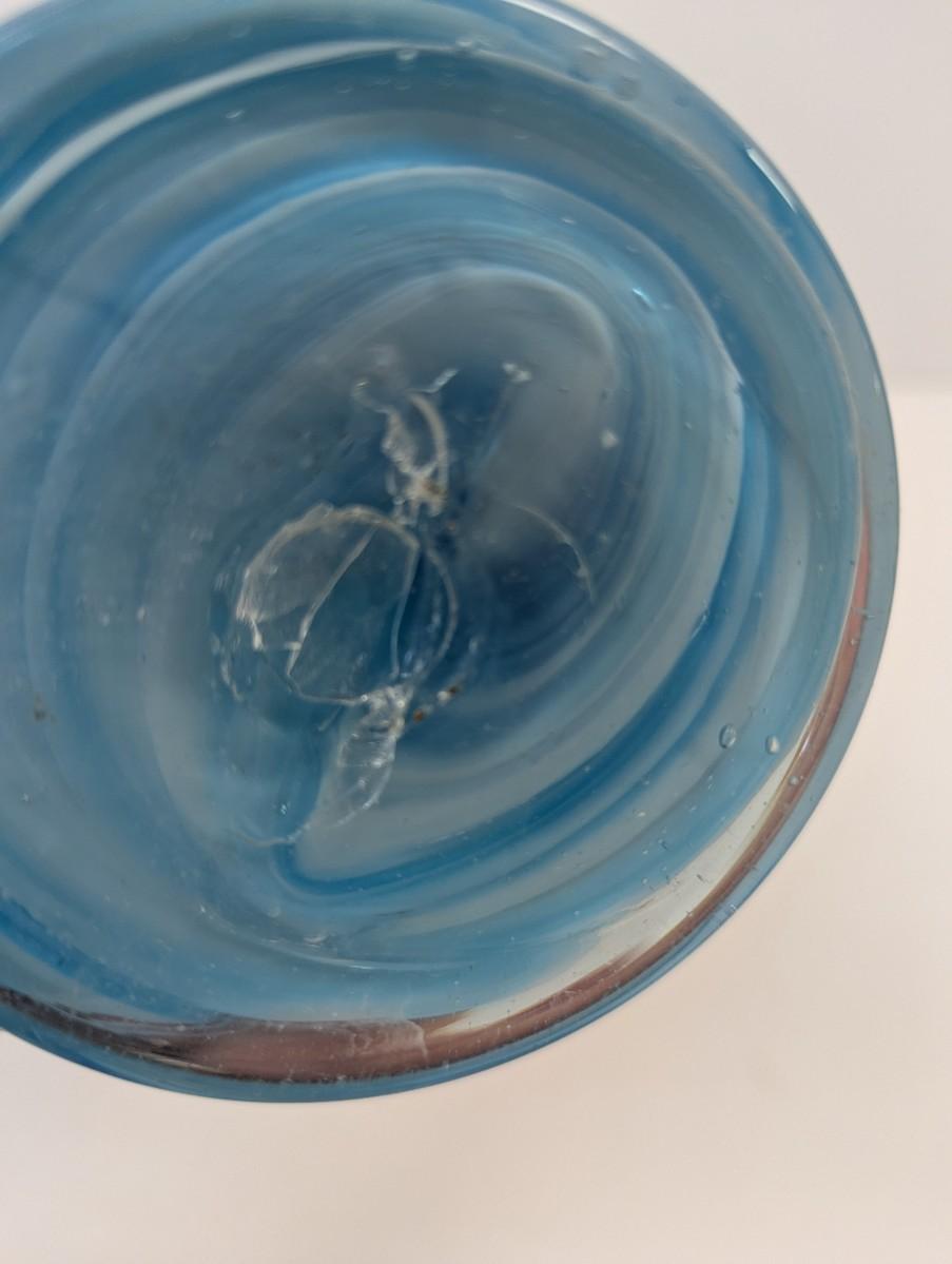 Vintage Swung Glass Hand Blown Blue White Approx 9 1/4" Tall