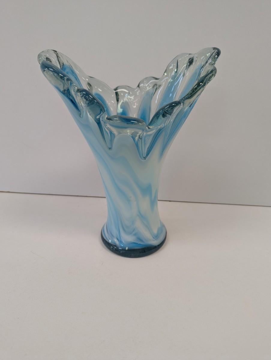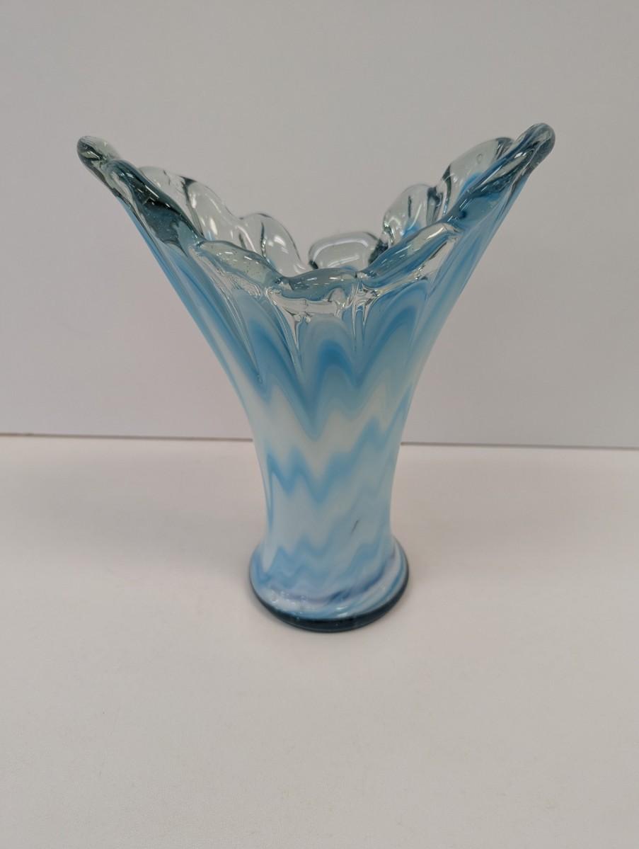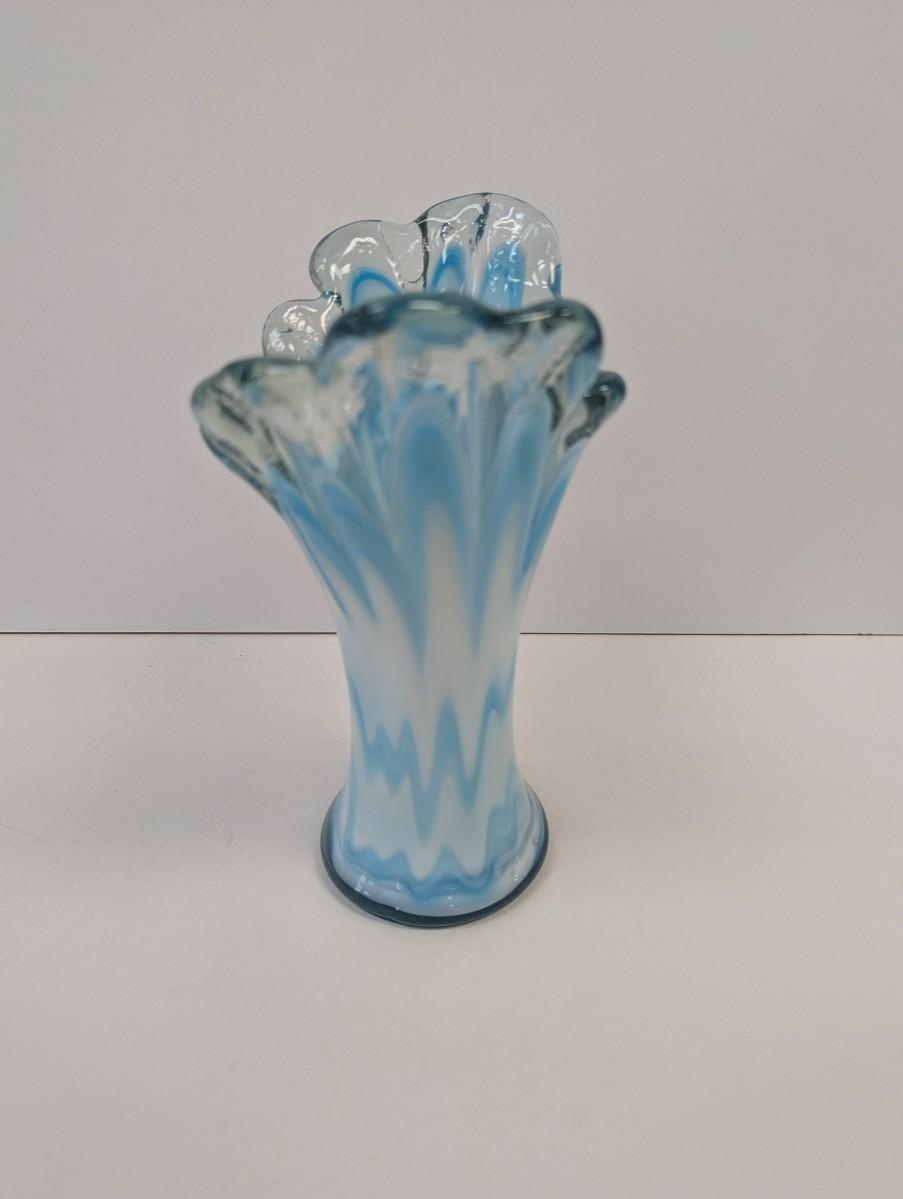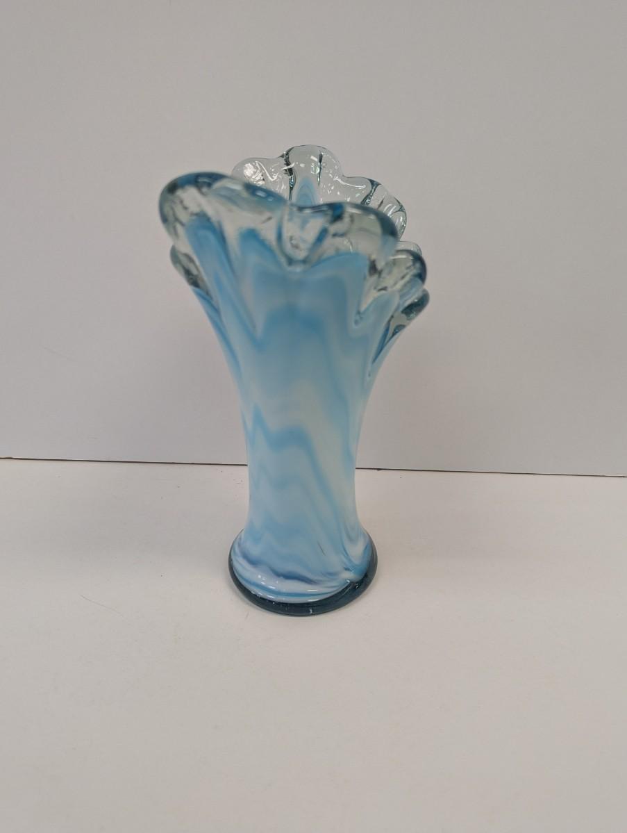 Vintage Swung Glass Hand Blown Blue White Approx 9 1/4" Tall