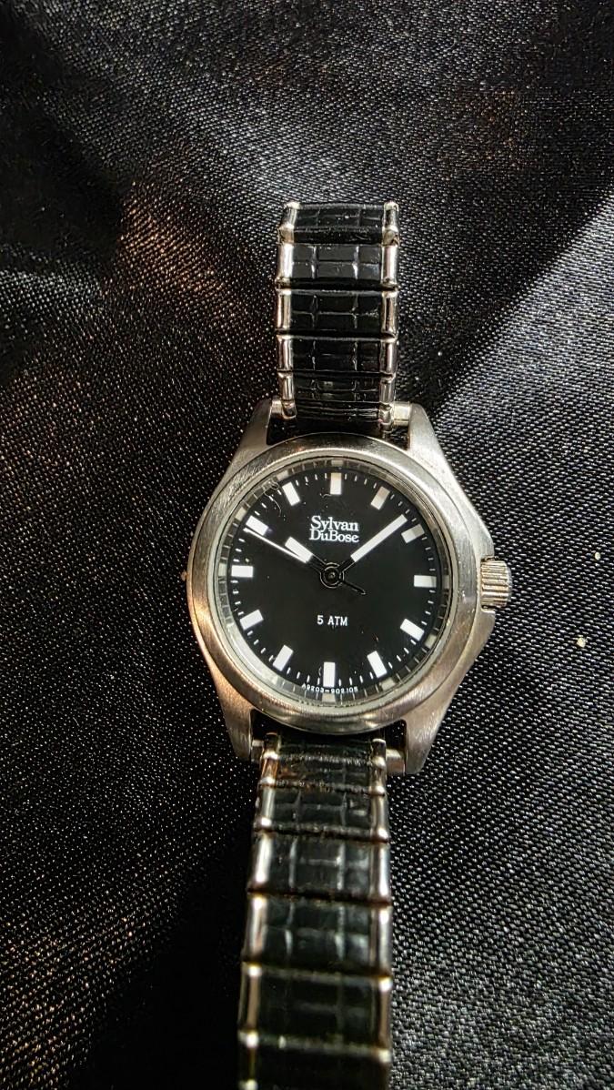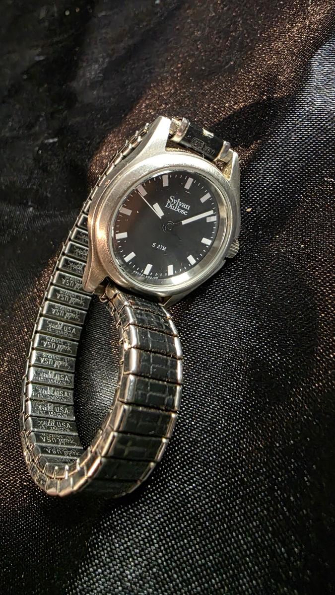 Vintage Sylvan Dubose Ladies Quartz Watch - Black Dial with Silver Markers and Expansion Band