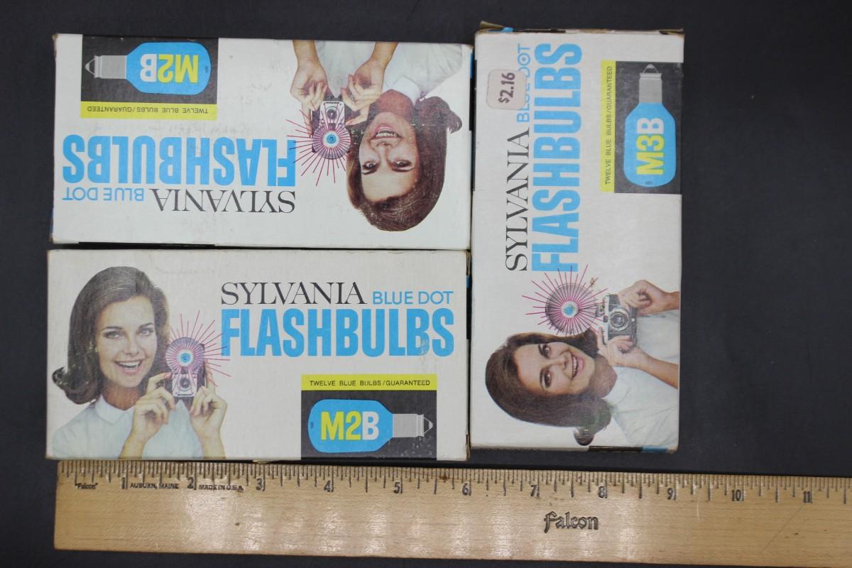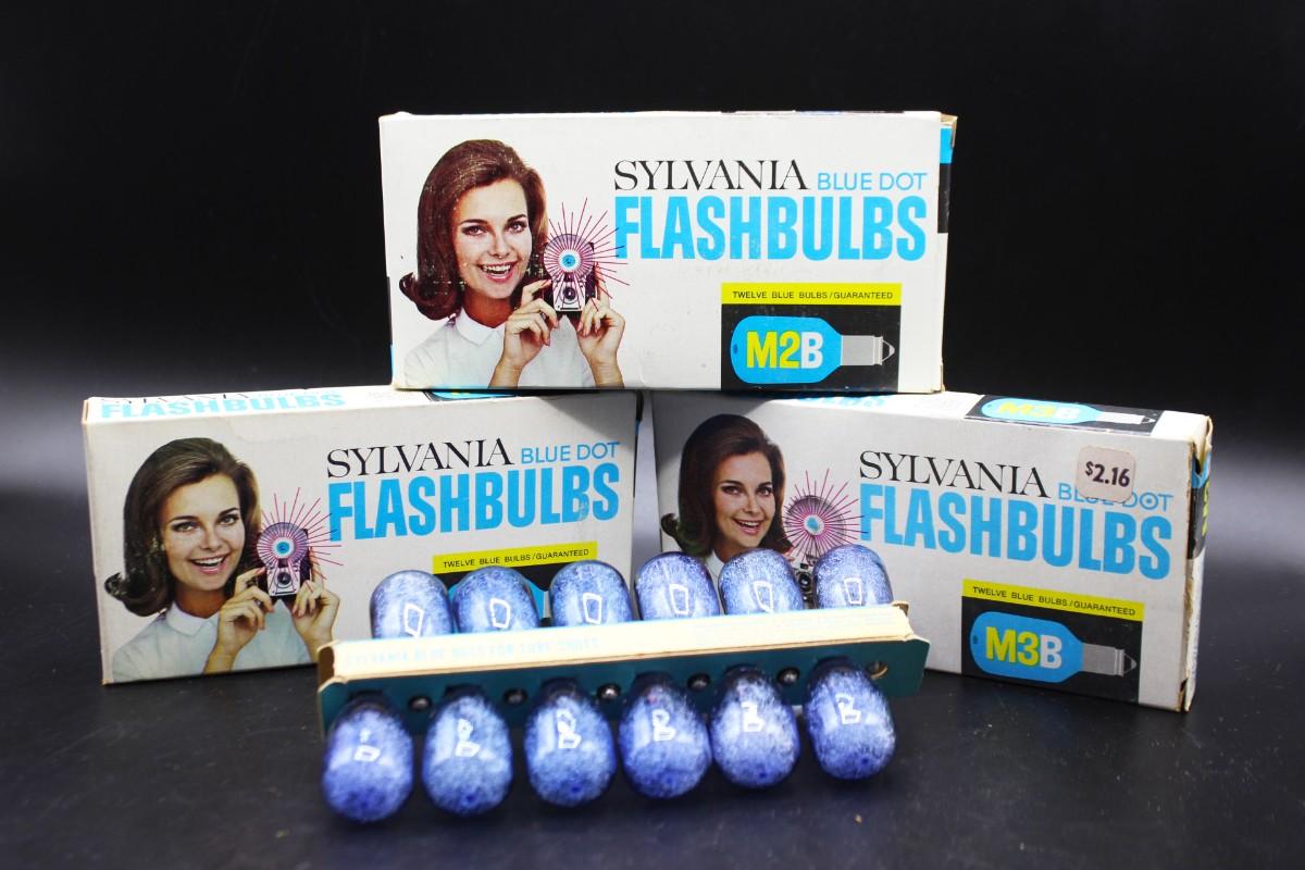 Vintage Sylvania Blue Dot Flashbulbs. Unused M2B M3B bulbs.