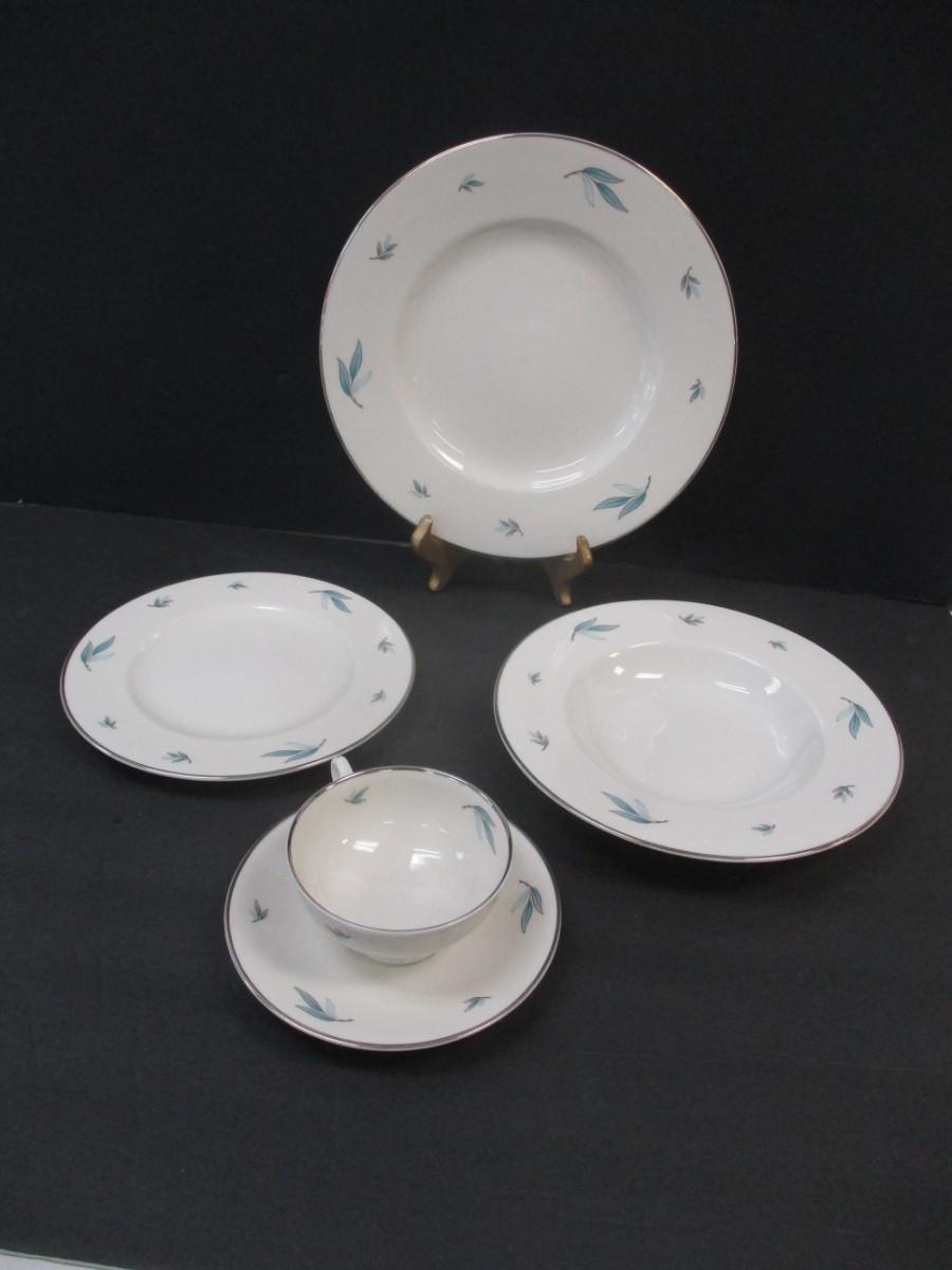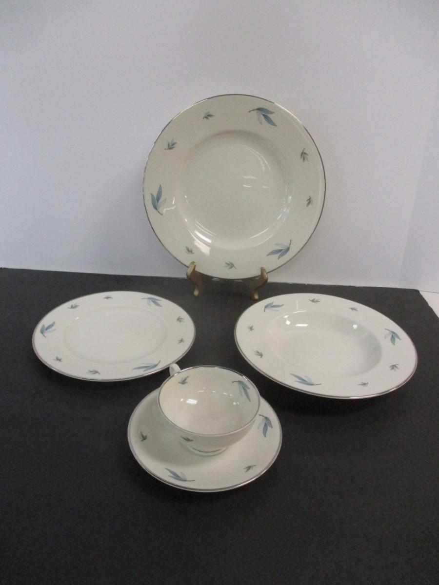 33 Pieces Of Vintage Syracuse Celeste Platinum Trim Blue Leaves