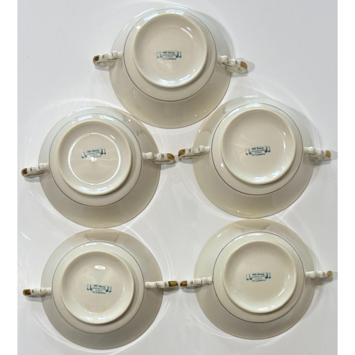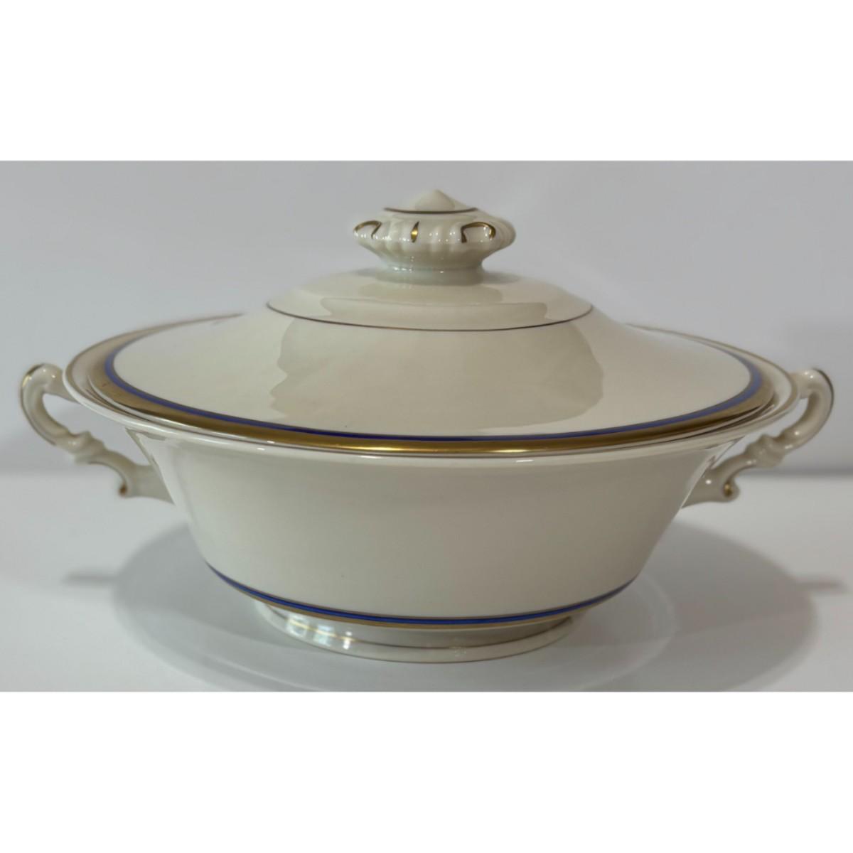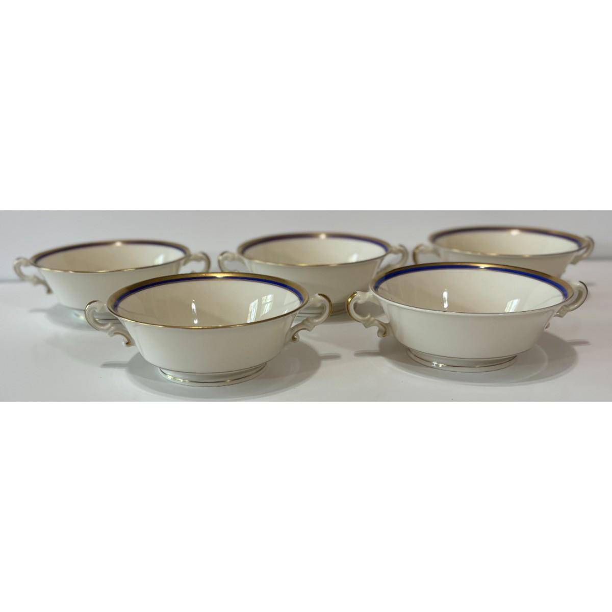 Vintage Syracuse China Old Ivory Blue & Gold Soup Tureen & 5 Double Handle Bowls