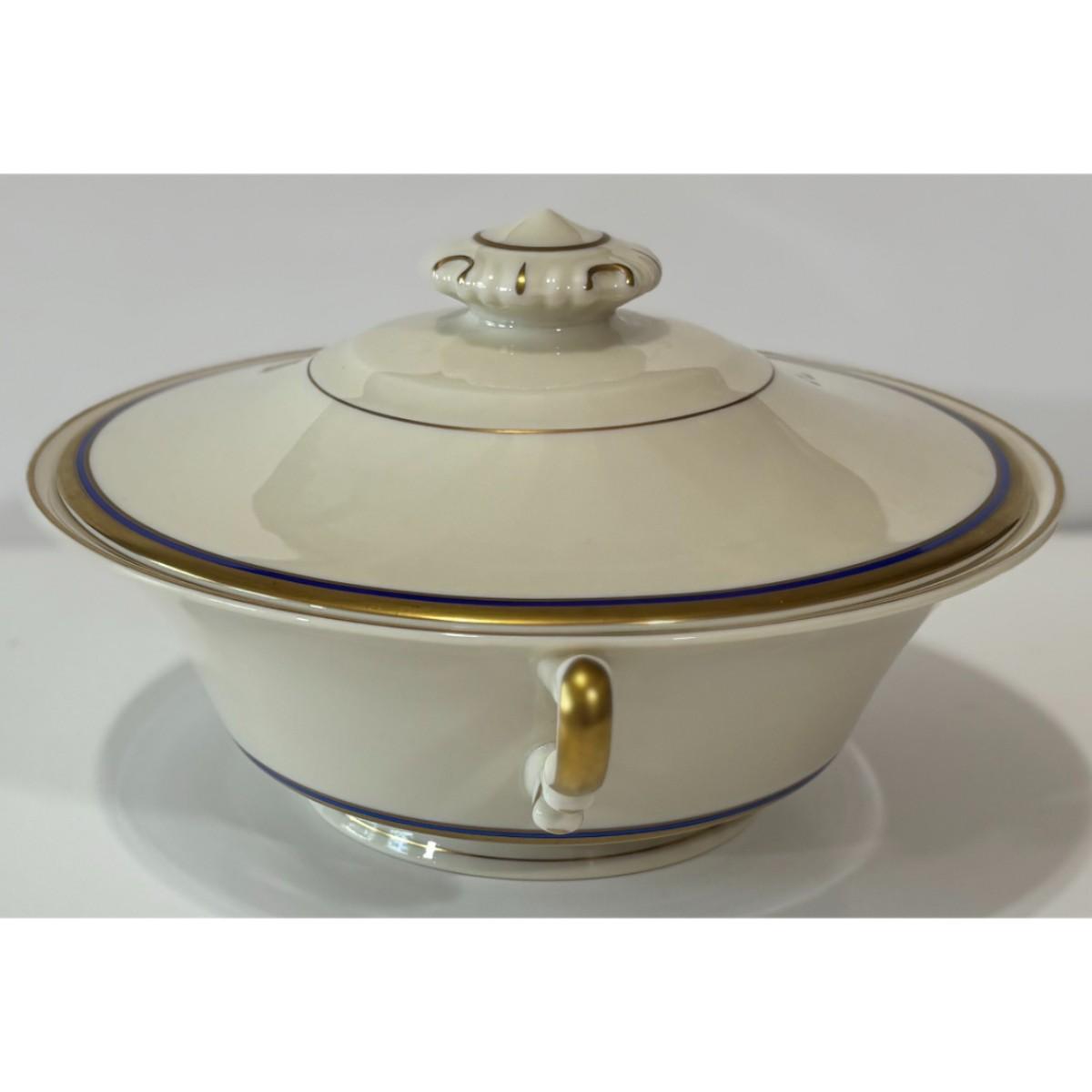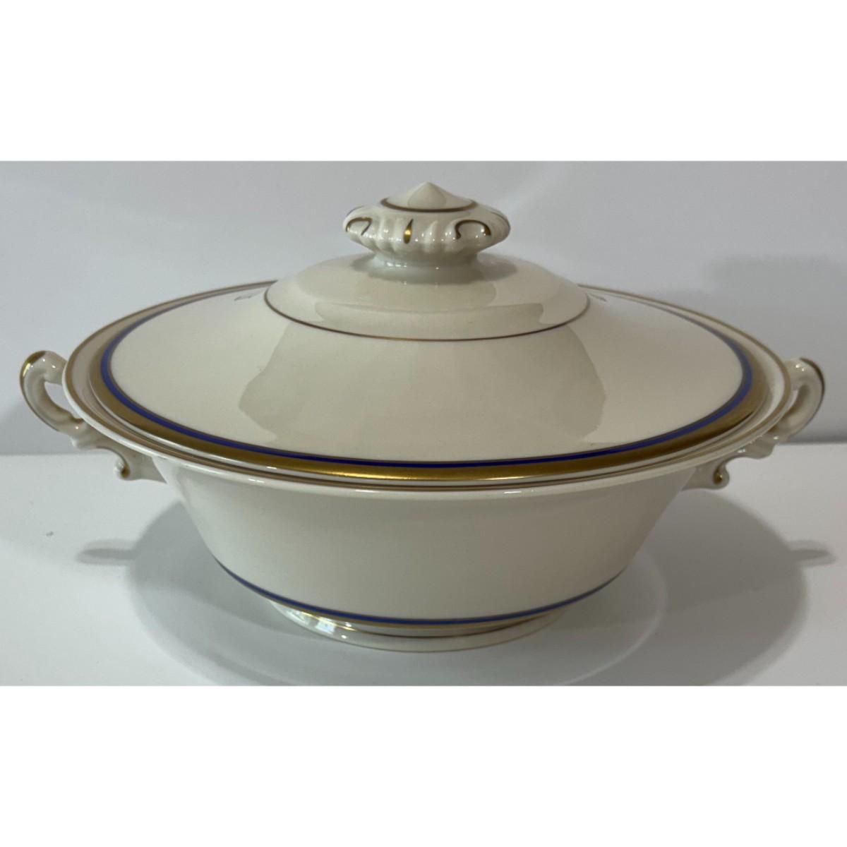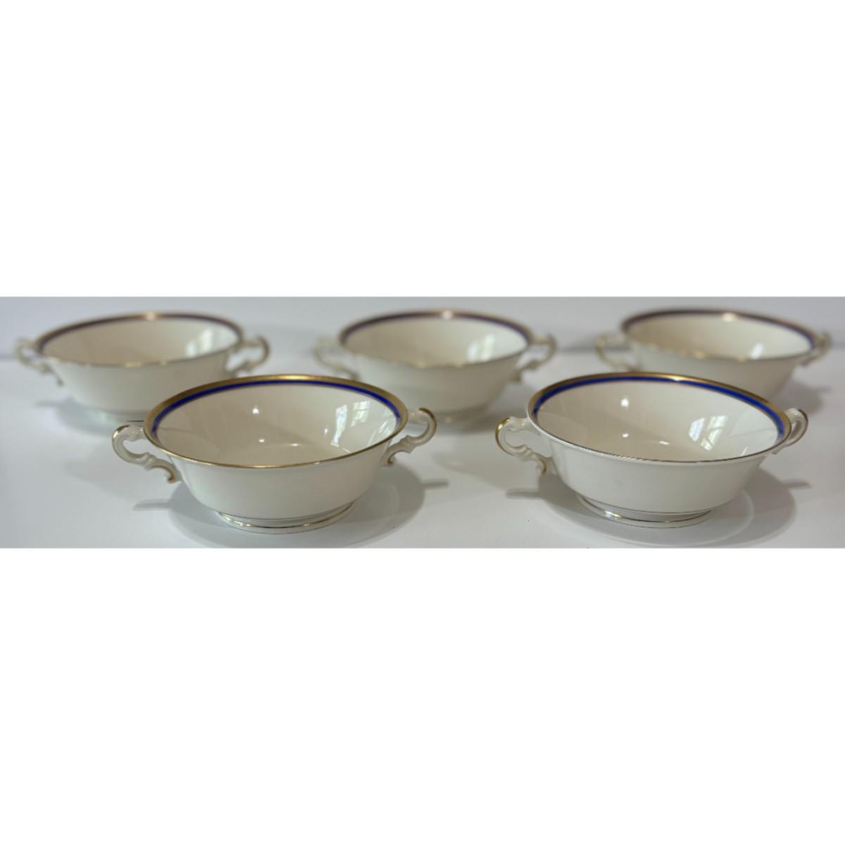 Vintage Syracuse China Old Ivory Blue & Gold Soup Tureen & 5 Double Handle Bowls