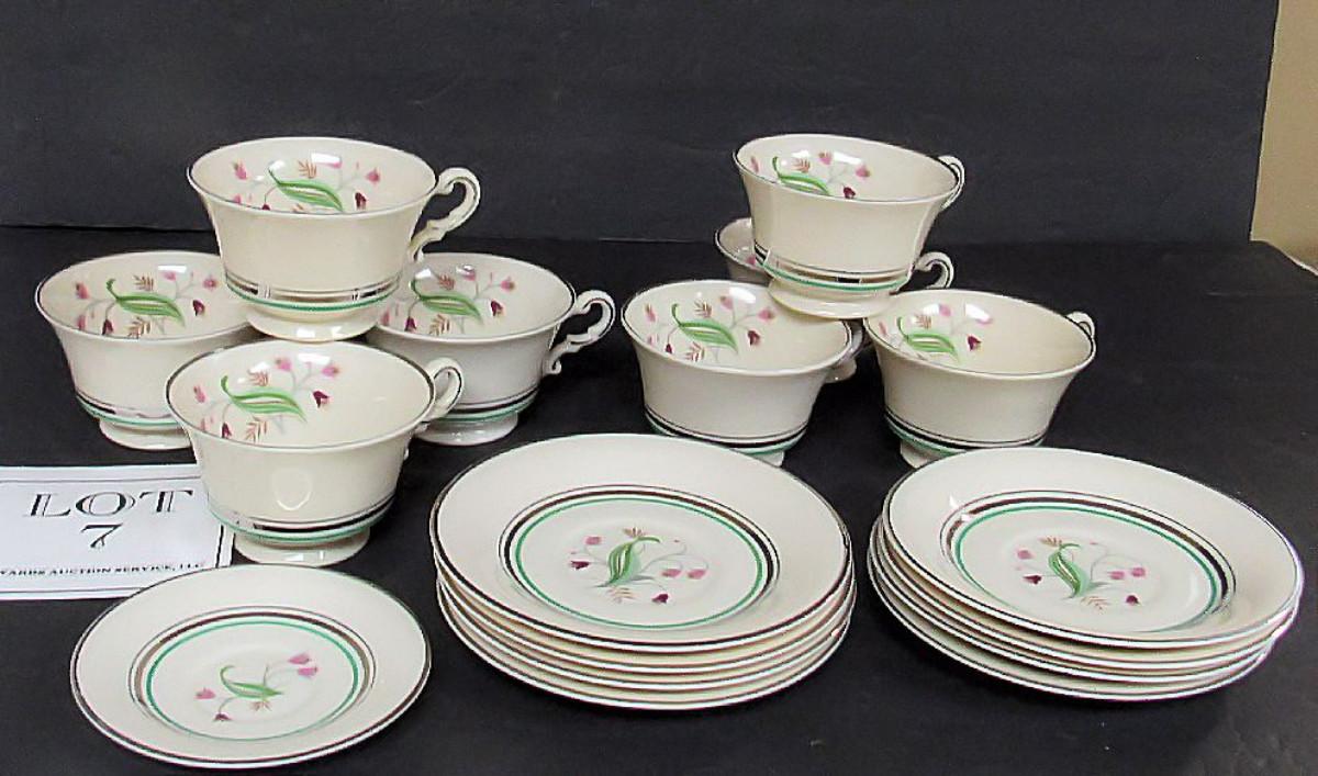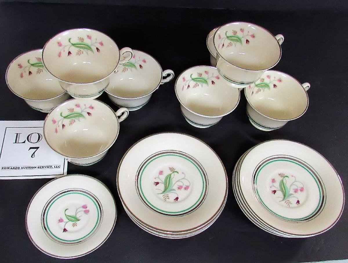 Vintage Syracuse China Old Ivory Set of 8 Cup and Saucers and 1 Demitasse Saucer, Coralbell Pattern