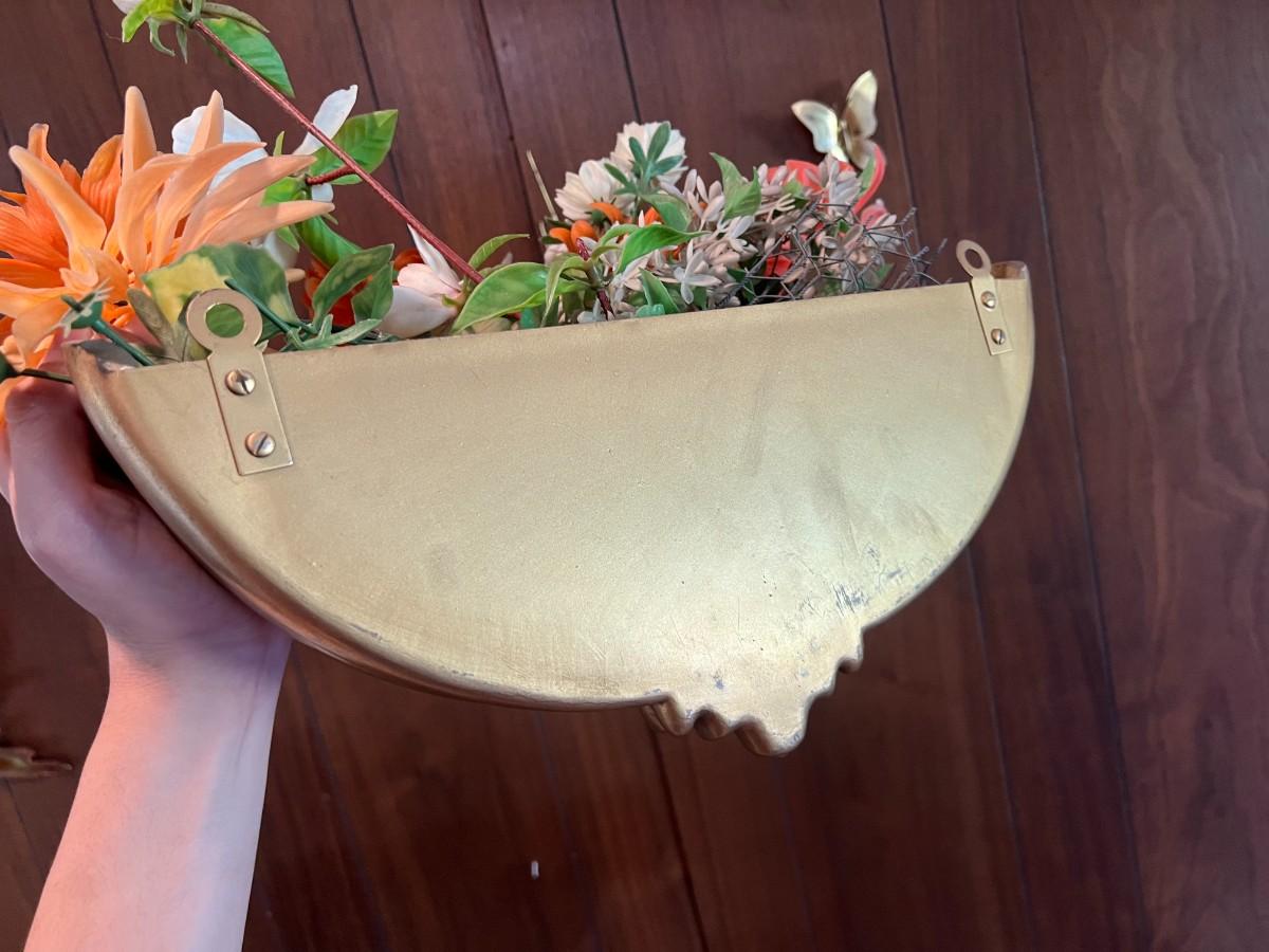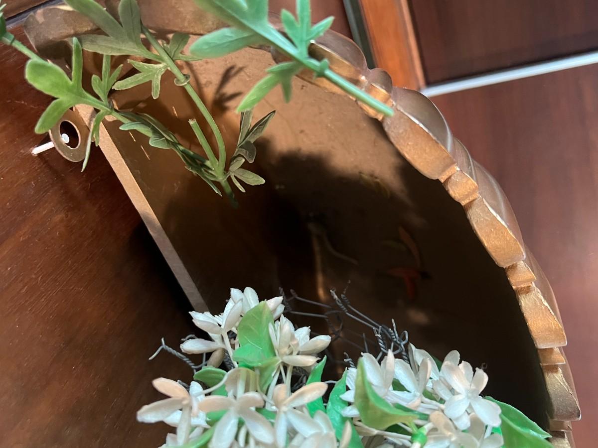 Vintage Syroco Gold Hollywood Regnecy Hanging Wall Decor with Faux Floral Arrangement