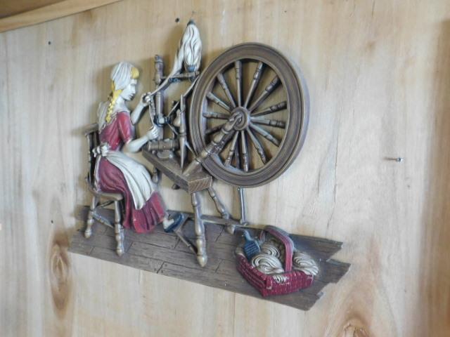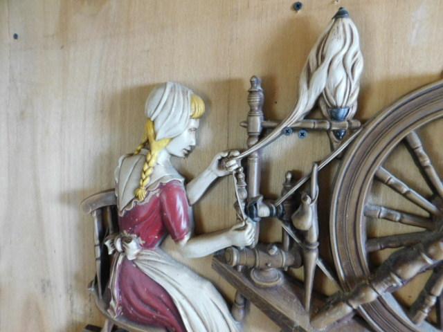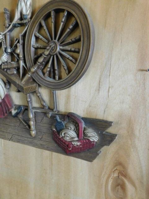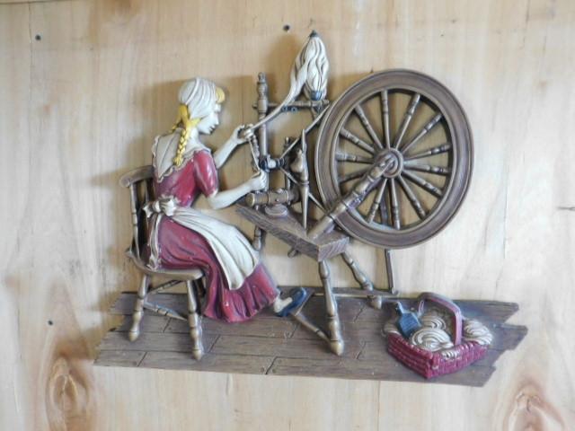 Vintage Syroco USA Lady at Spinning Wheel Wall Decor