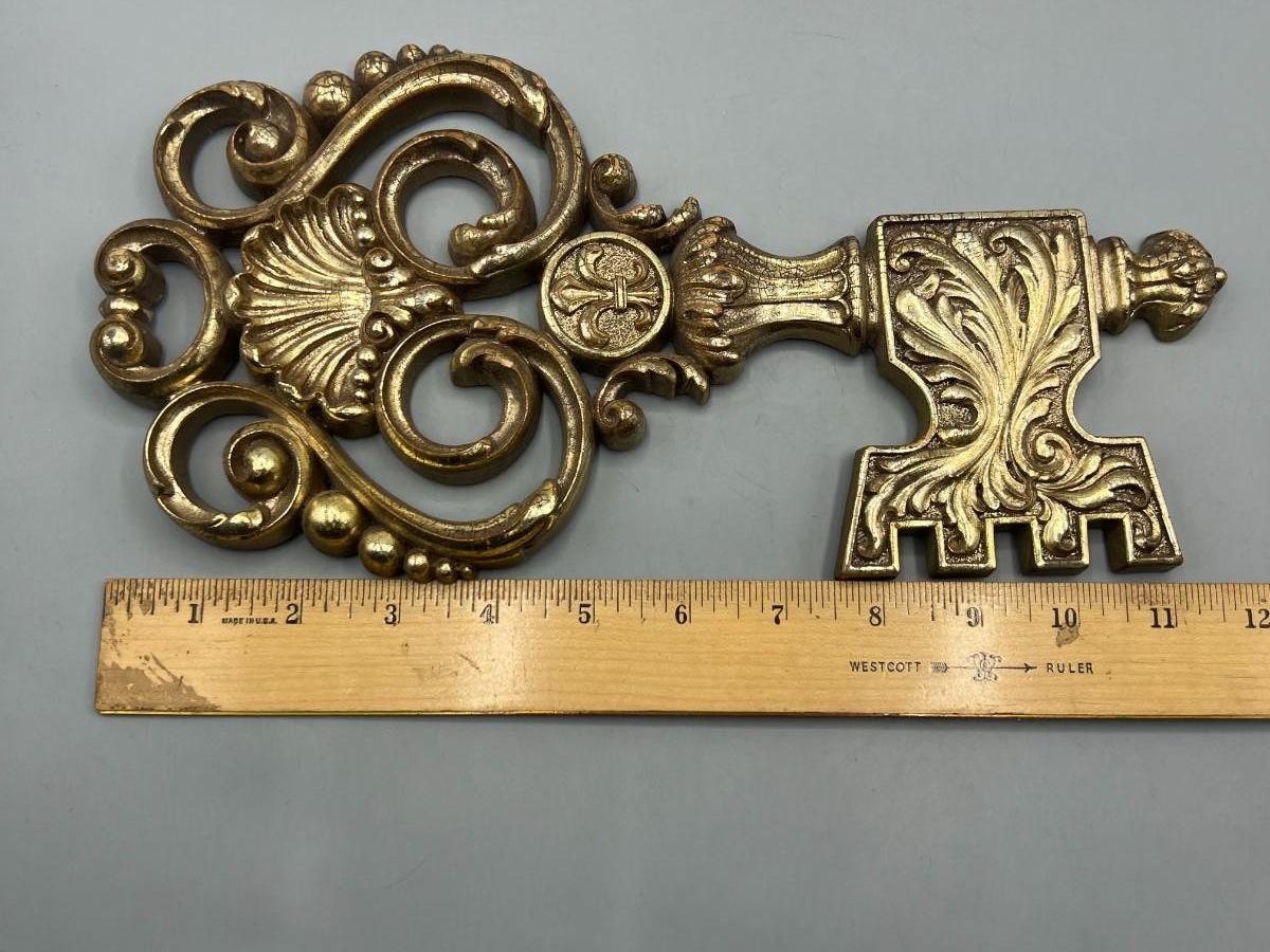 Vintage Syroco Wood Hanging Ornate Gold Skeleton Key Mid Century Wall Decor