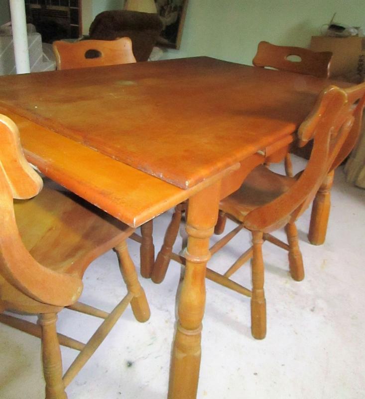 Cool Vintage Table Set has pull out extension ends and 5 chairs