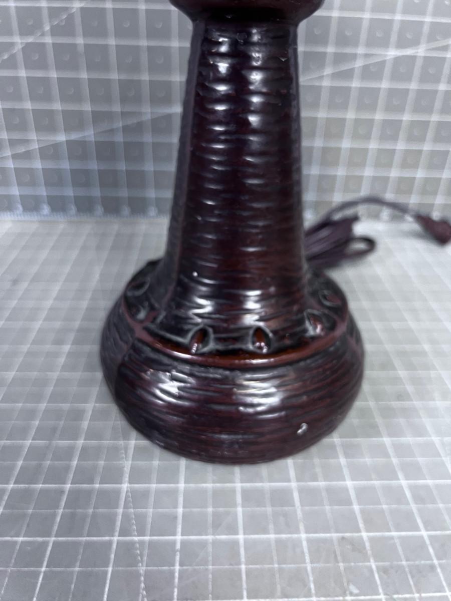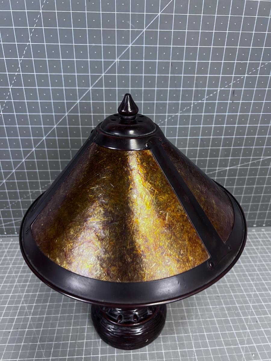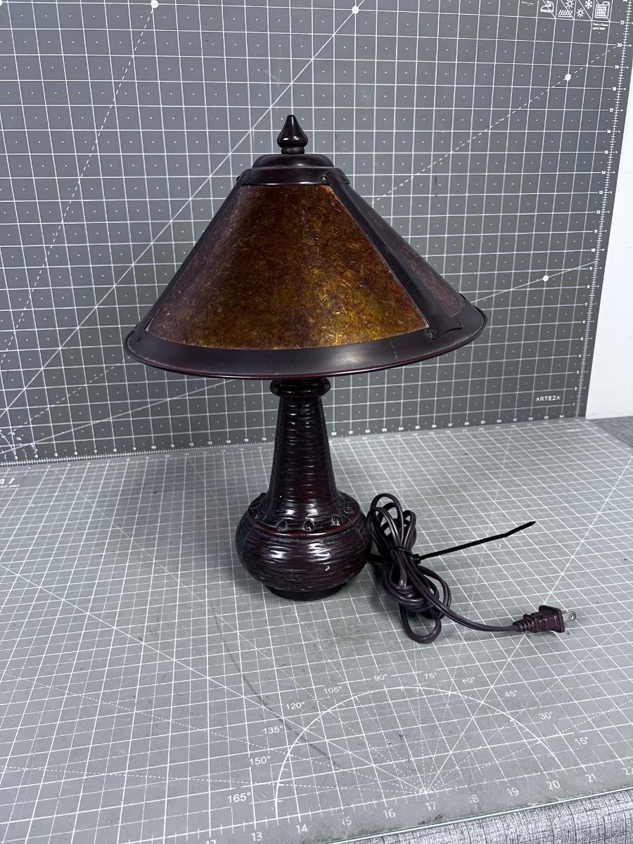 Good Condition. 15" Tall An Arts & Crafts Look. Metal Lamp. Usable. Brown on Brown. GOOD LOOKING!