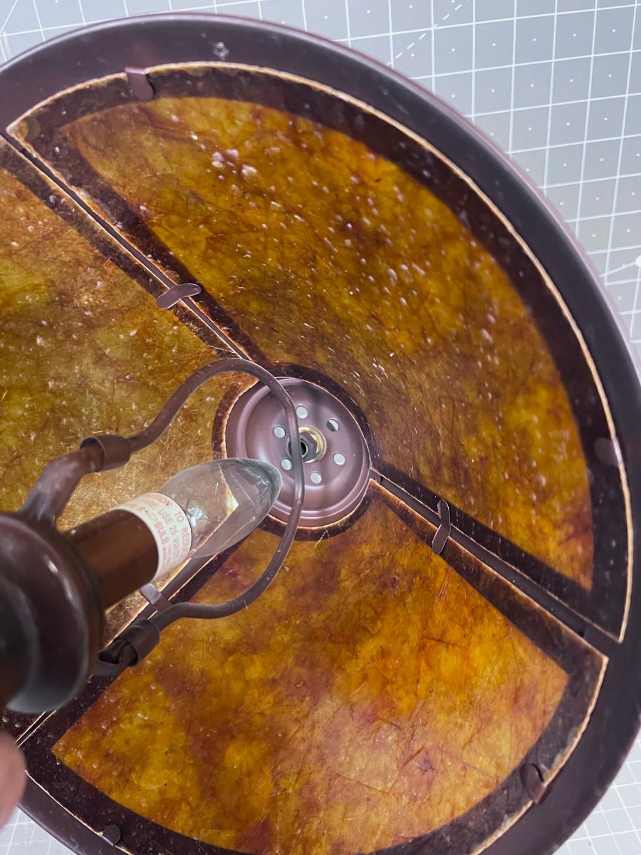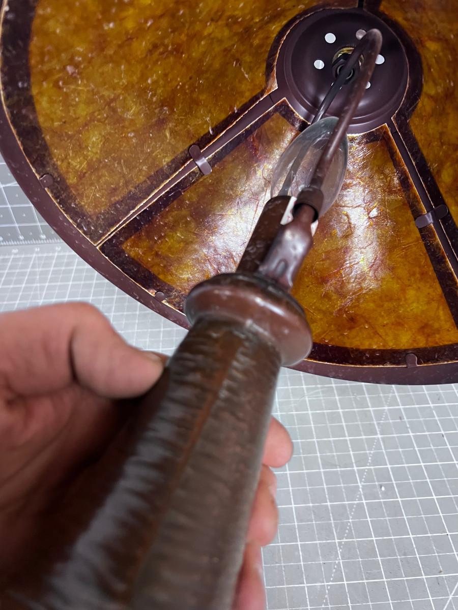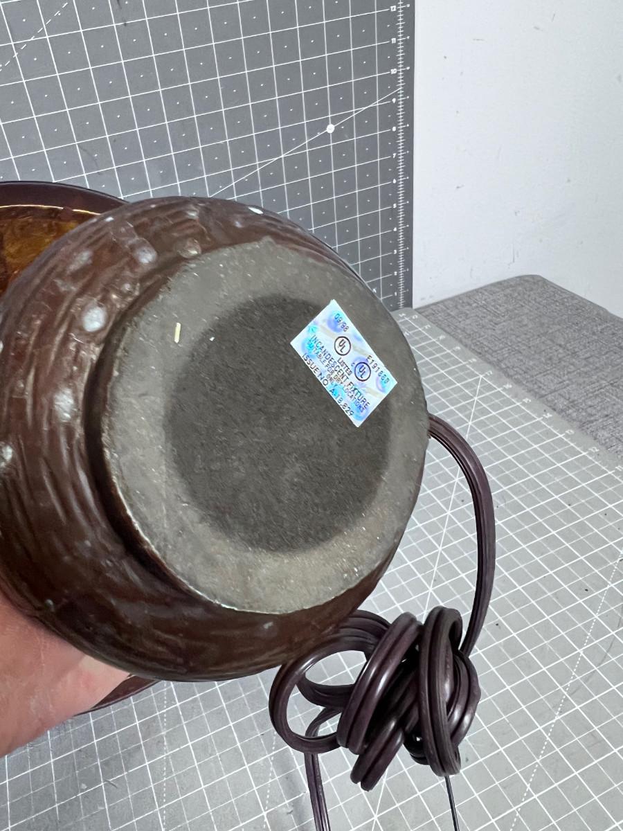 Good Condition. 15" Tall An Arts & Crafts Look. Metal Lamp. Usable. Brown on Brown. GOOD LOOKING!