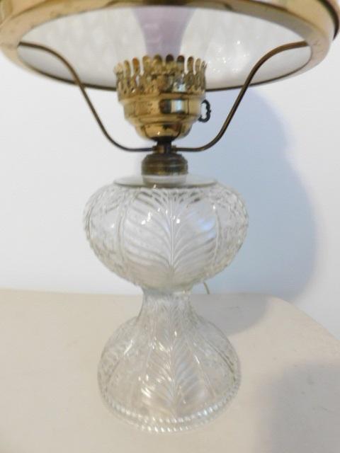 Vintage Table Lamp with Clear Glass Post and Layered Milk Glass Shade