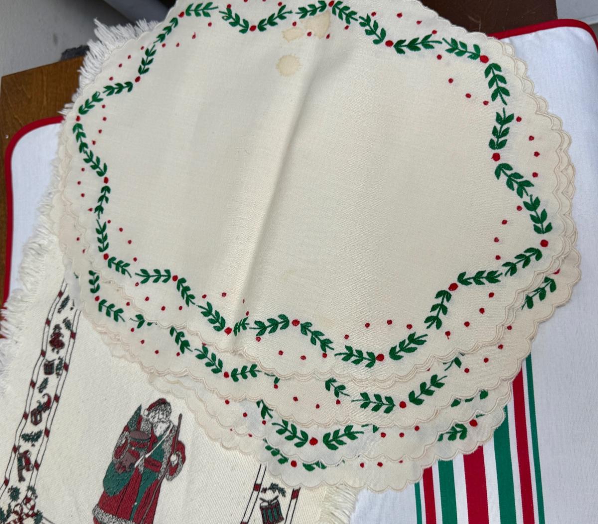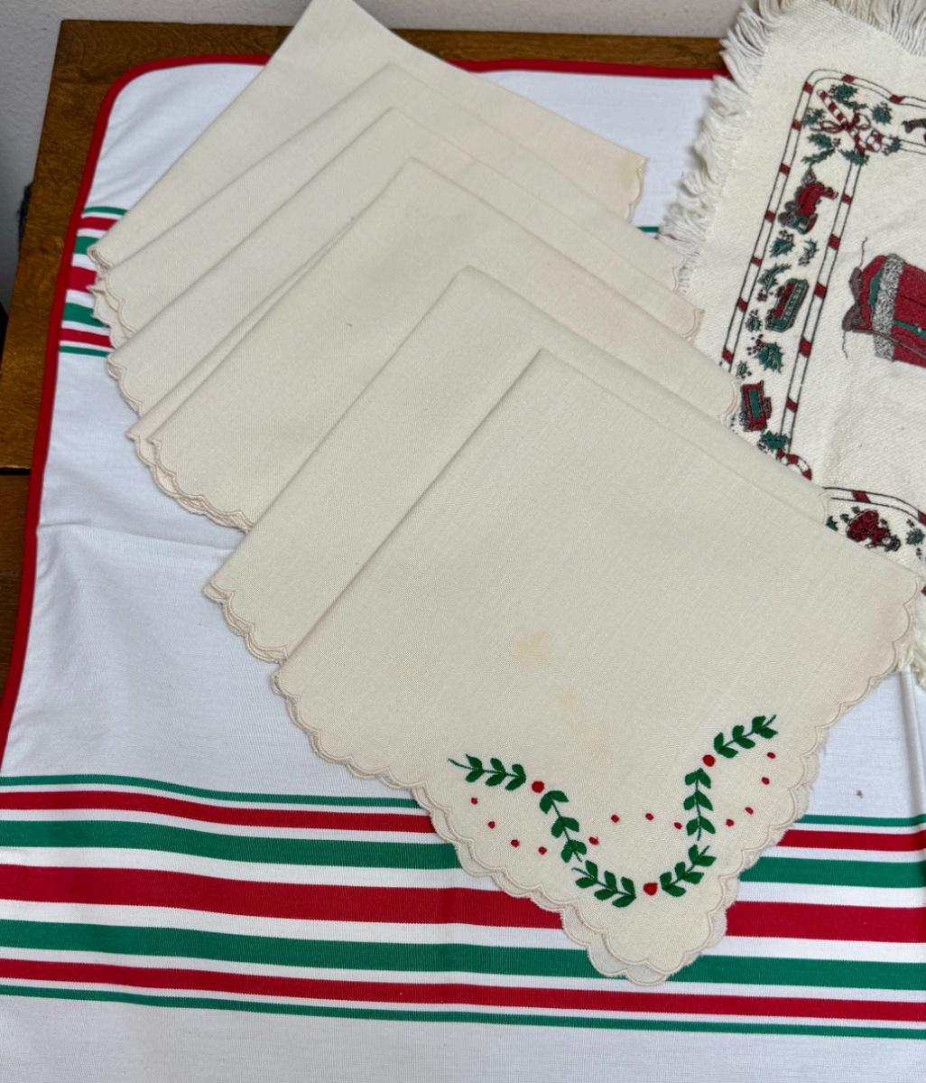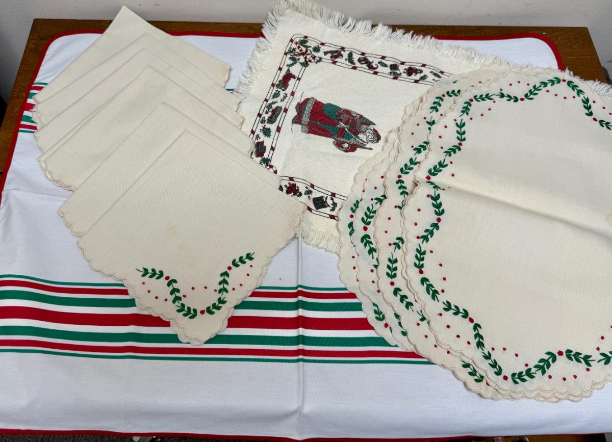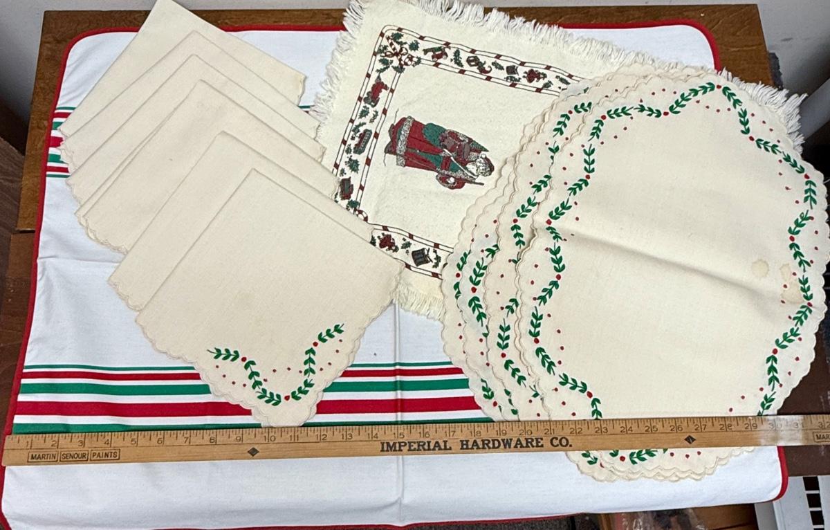 Vintage Table Linen - large towel, small towel, Placemats and napkins Christmas Holiday pattern