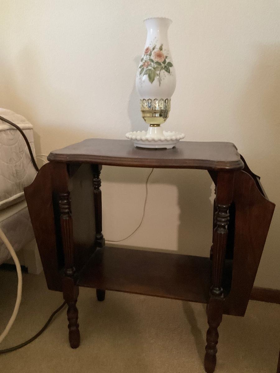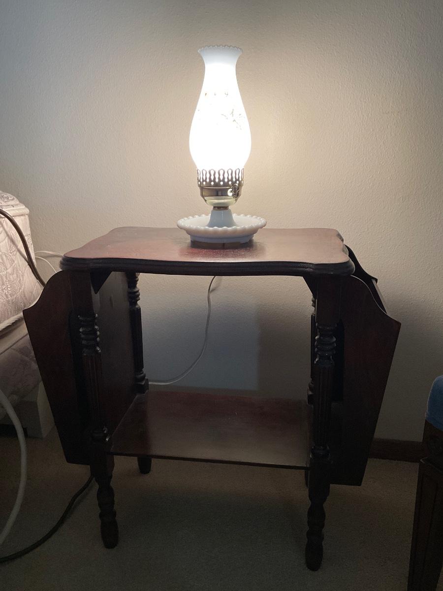 Vintage table with side holders and small lamp